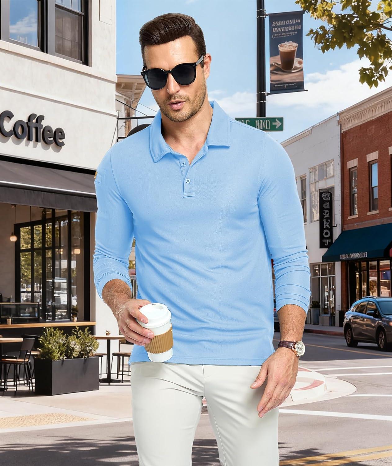 Be the first to review “Men’s Long Sleeve Polo Shirts 3 Button Down with Pocket Classic Golf Breathable Solid Color Designed Collared Casual Tee(Moon Blue)” Cancel reply
