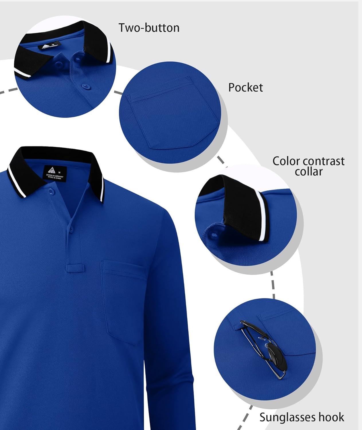 ZITY 3 Pack Men Polo Shirts Long Sleeve with Pocket Golf Shirts Shirts for Men Casual Work Athletic Collared T-Shirts(Black Winered Sapphireblue)