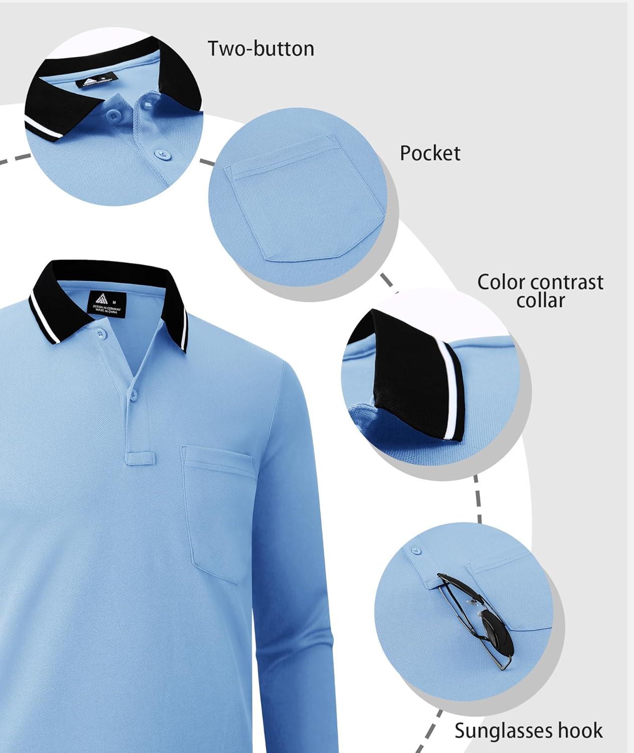 ZITY 3 Pack Men Polo Shirts Long Sleeve with Pocket Golf Shirts Shirts for Men Casual Work Athletic Collared T-Shirts(Grey Lightblue Sapphireblue)