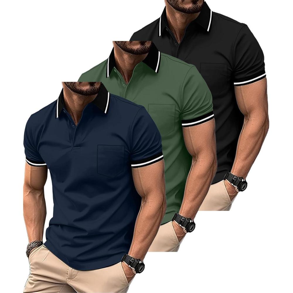 ZITY 3 Pack Men Polo Shirts Short Sleeve with Pocket Sport Wicking Shirts for Men Casual Athletic Collared T-Shirts(Black Green Navy)