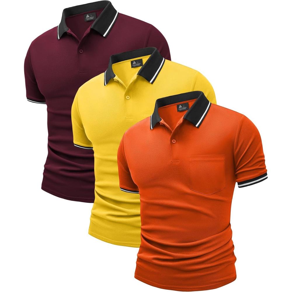 ZITY 3 Pack Men Polo Shirts Short Sleeve with Pocket Sport Wicking Shirts for Men Casual Athletic Collared T-Shirts(Orange Yelleow Red)