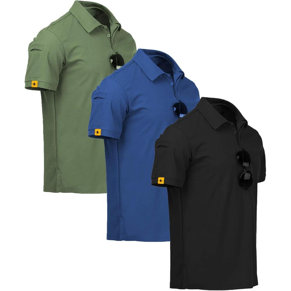 ZITY 3 Pack Mens Polo Shirt Short Sleeve Sports Performance Business Casual Golf Shirts for Men Collared Tactical T-Shirts(Black Blue Green)