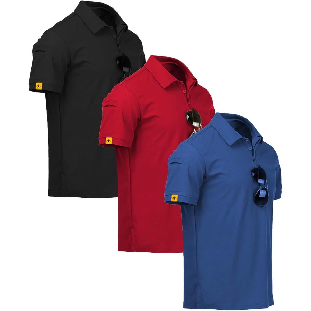 ZITY 3 Pack Mens Polo Shirt Short Sleeve Sports Performance Business Casual Golf Shirts for Men Collared Tactical T-Shirts(Black Red Blue)