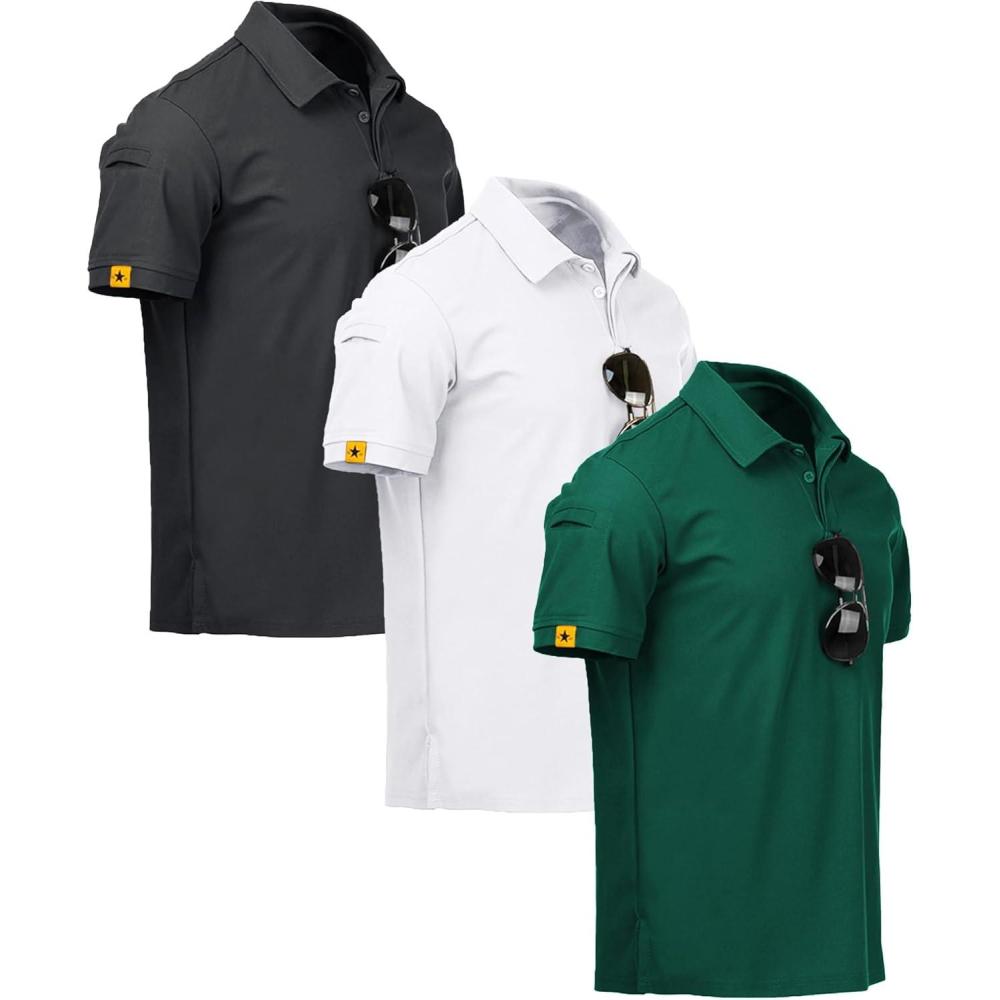 ZITY 3 Pack Mens Polo Shirt Short Sleeve Sports Performance Business Casual Golf Shirts for Men Collared Tactical T-Shirts(Grey Black Green)