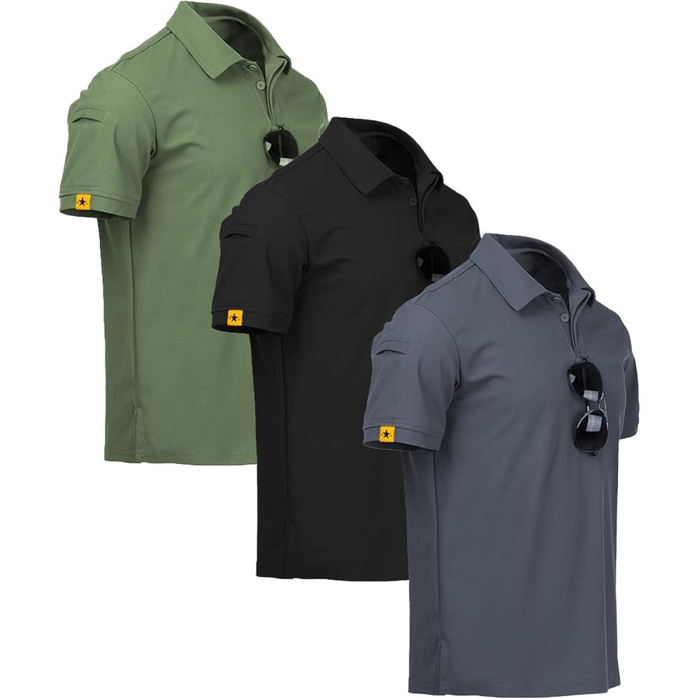 ZITY 3 Pack Mens Polo Shirt Short Sleeve Sports Performance Business Casual Golf Shirts for Men Collared Tactical T-Shirts(Grey Black Green)