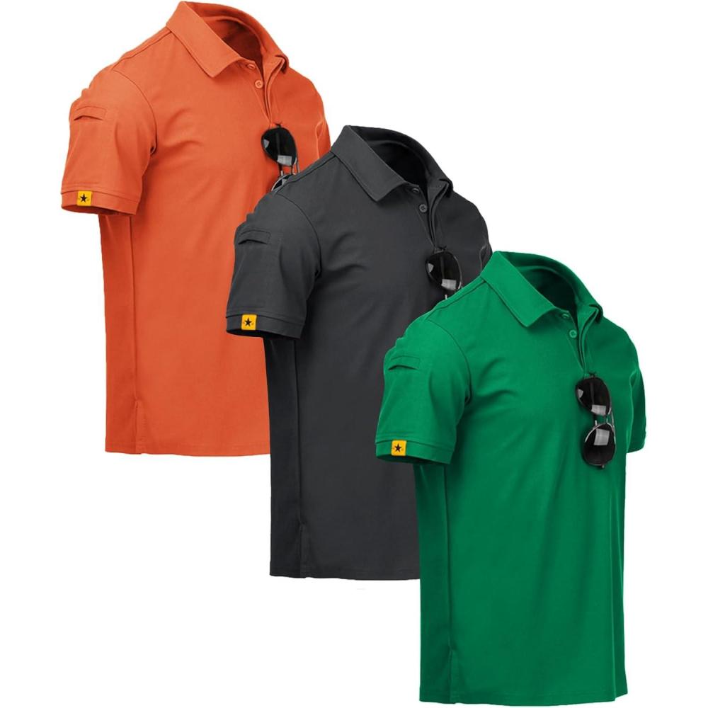 ZITY 3 Pack Mens Polo Shirt Short Sleeve Sports Performance Business Casual Golf Shirts for Men Collared Tactical T-Shirts(Orange Grey Grass)