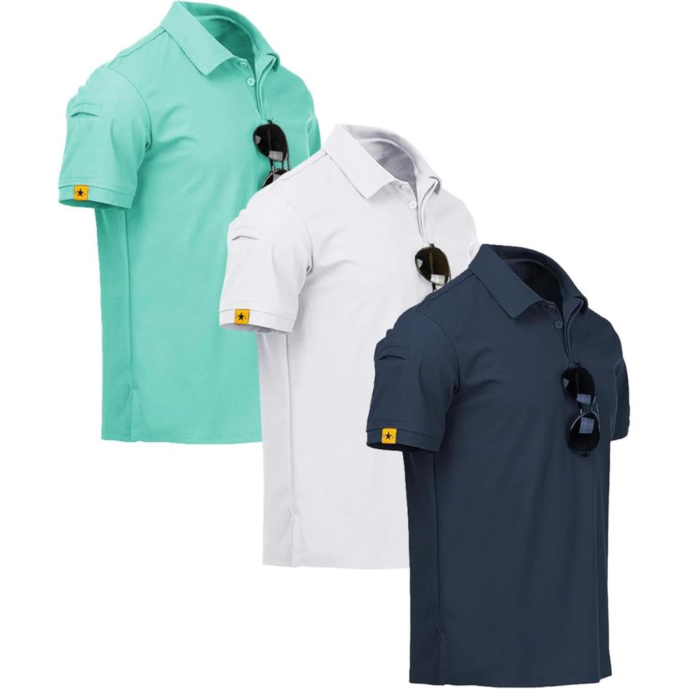 ZITY 3 Pack Mens Polo Shirt Short Sleeve Sports Performance Business Casual Golf Shirts for Men Collared Tactical T-Shirts(Turquoise White Darkblue)