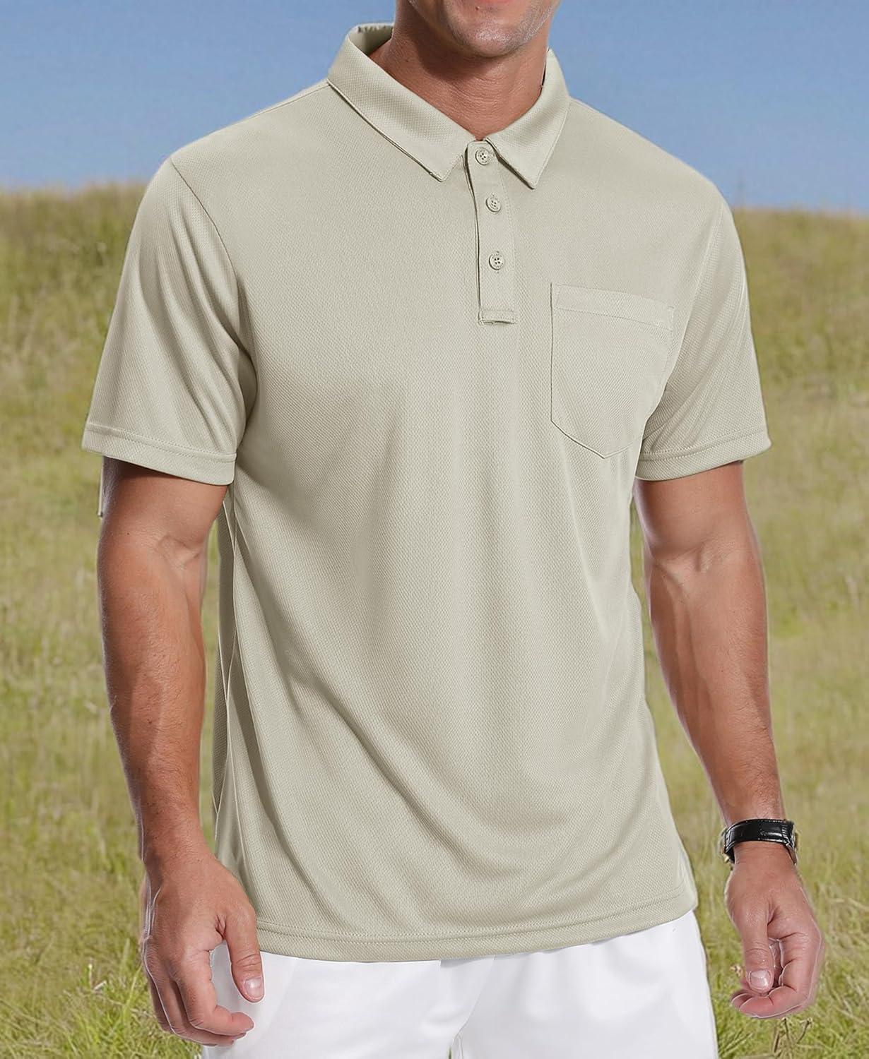 ZITY 3 Pack Polo Shirts for Men with Pocket Short Sleeve Moisture Wicking Outdoor Tactical Shirt Summer Casual(Apricot+navy+light Blue)