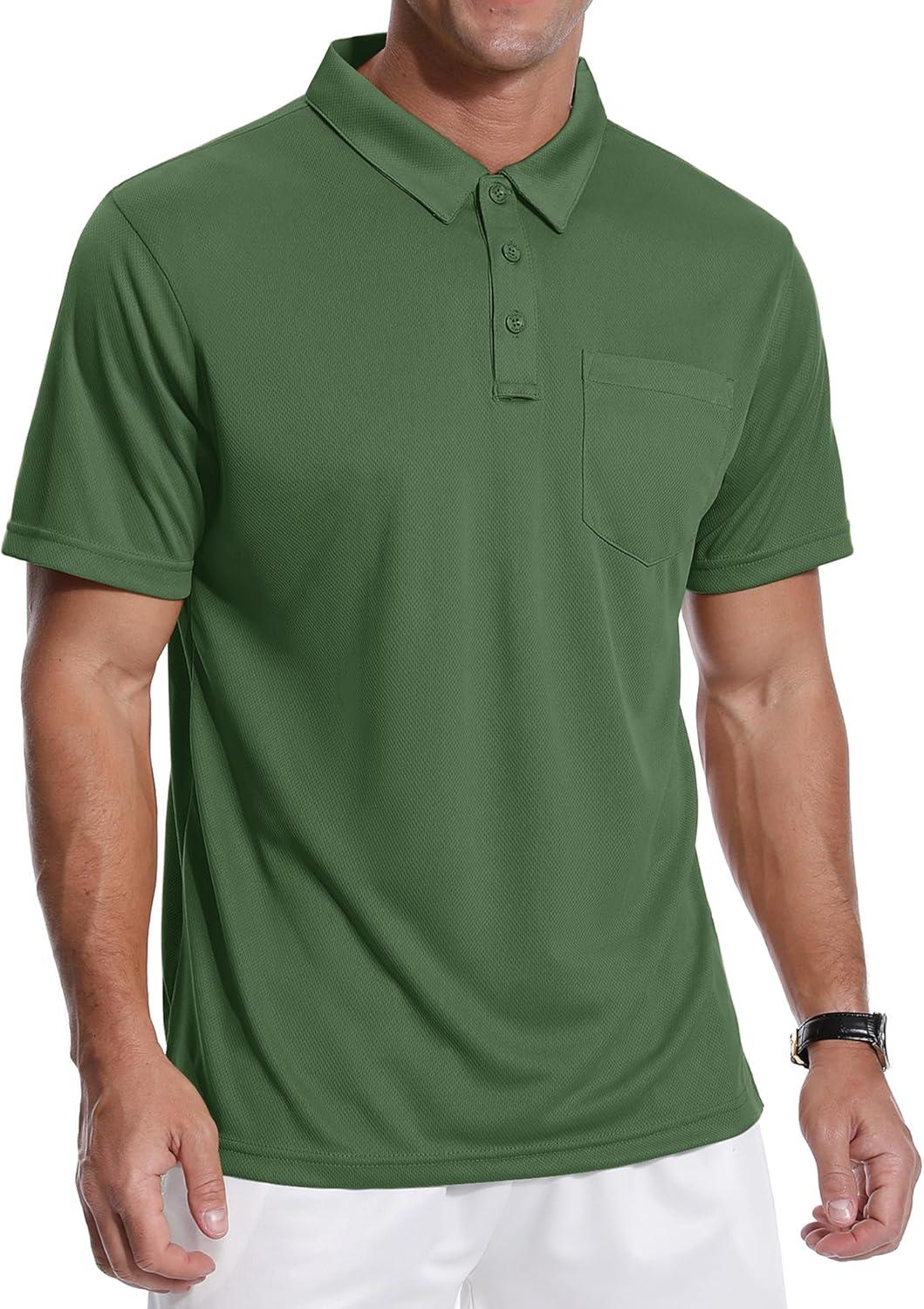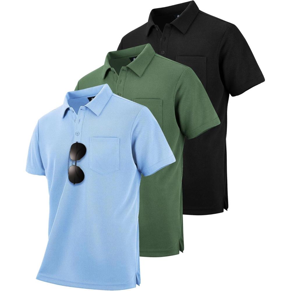 ZITY 3 Pack Polo Shirts for Men with Pocket Short Sleeve Moisture Wicking Outdoor Tactical Shirt Summer Casual(Black+army Green+light Blue)