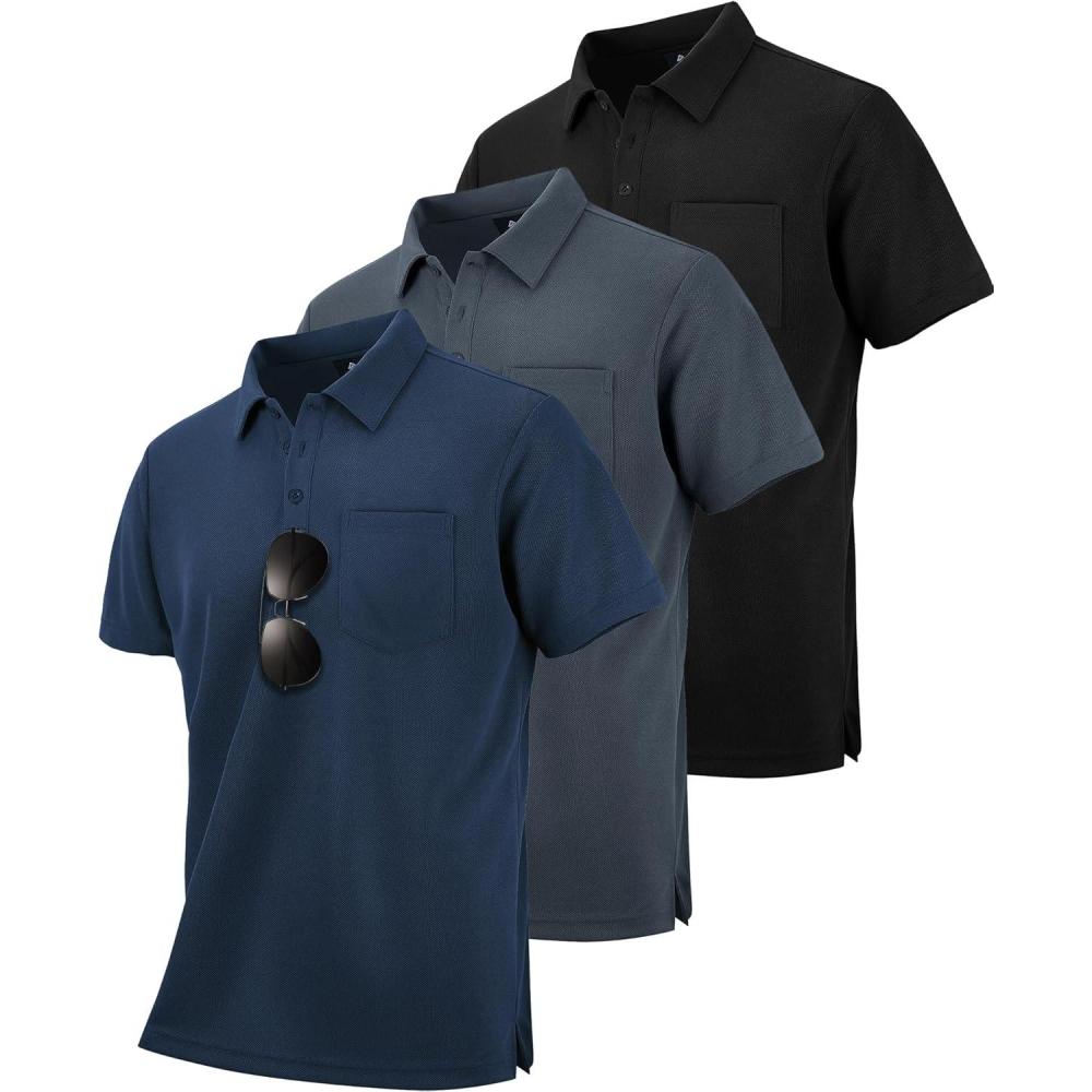 ZITY 3 Pack Polo Shirts for Men with Pocket Short Sleeve Moisture Wicking Outdoor Tactical Shirt Summer Casual(Black+grey+navy)
