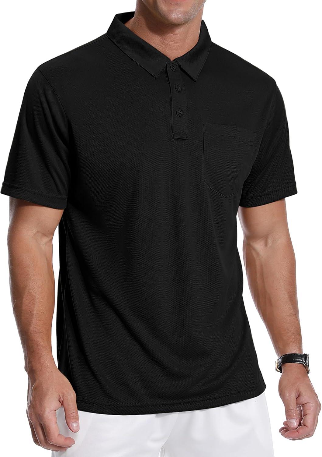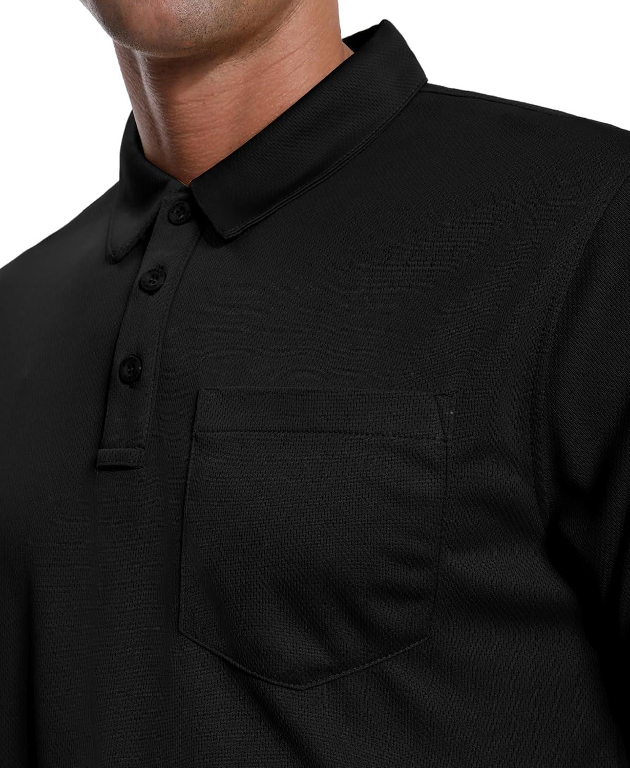 ZITY 3 Pack Polo Shirts for Men with Pocket Short Sleeve Moisture Wicking Outdoor Tactical Shirt Summer Casual(Black+grey+navy)