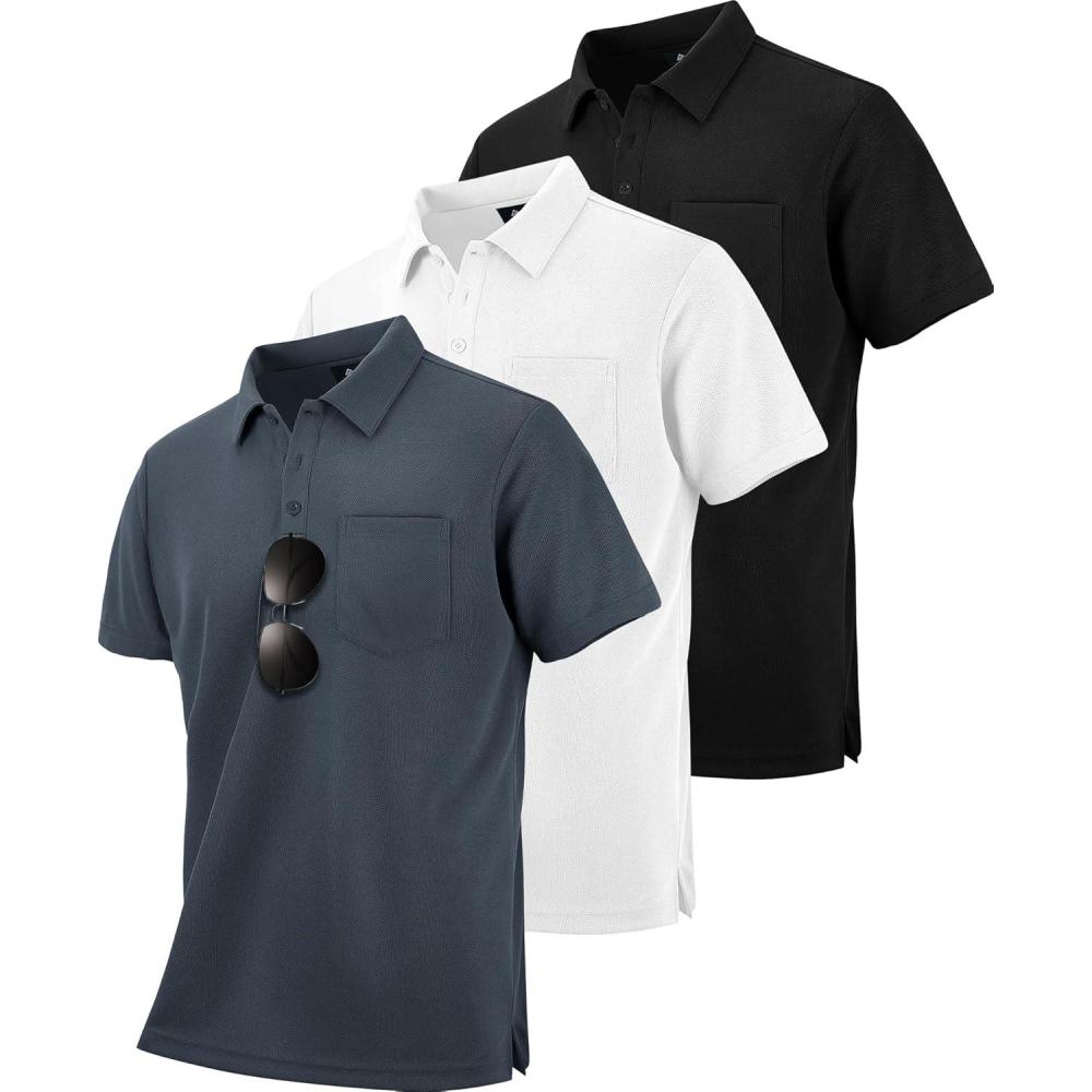 ZITY 3 Pack Polo Shirts for Men with Pocket Short Sleeve Moisture Wicking Outdoor Tactical Shirt Summer Casual(Black+grey+white)