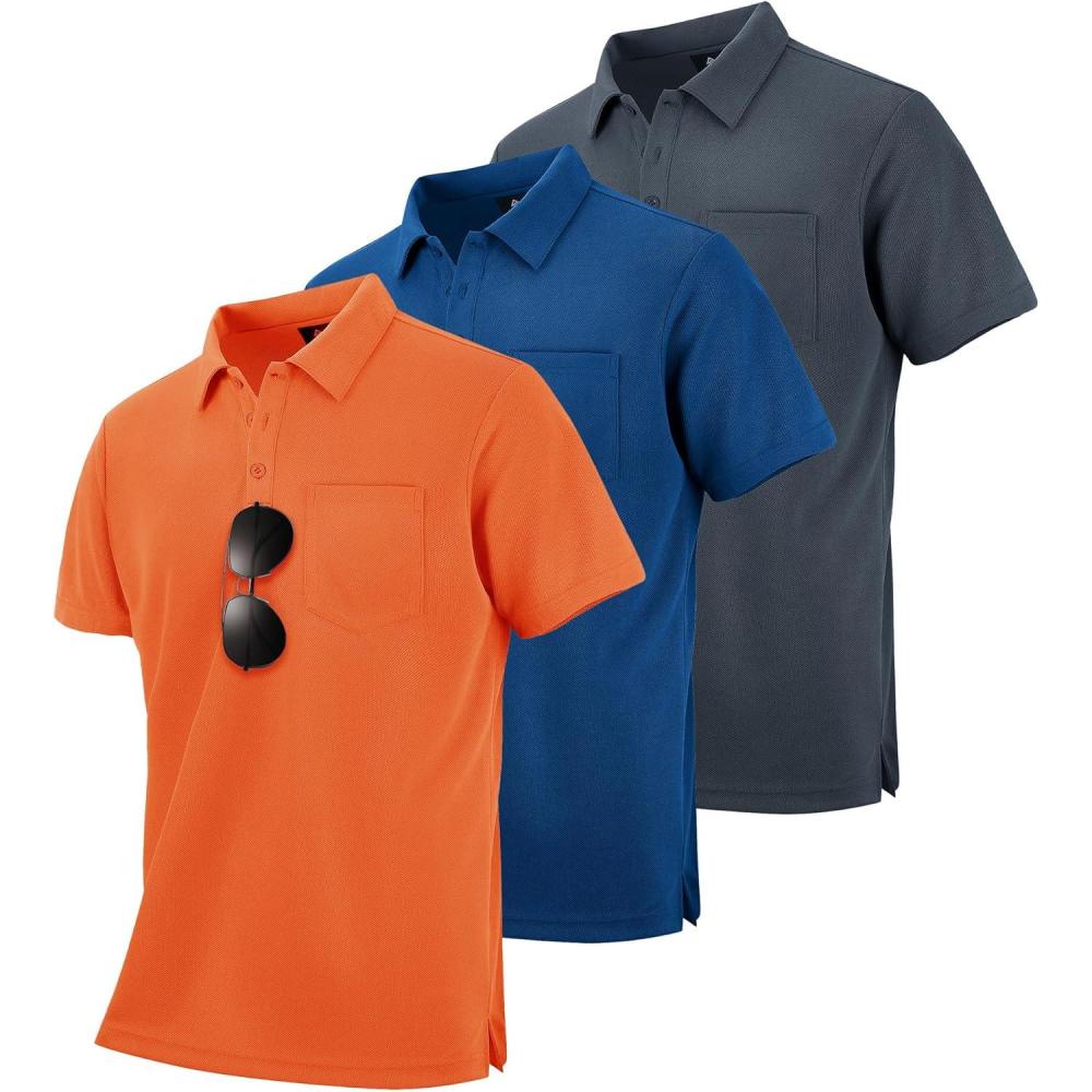 ZITY 3 Pack Polo Shirts for Men with Pocket Short Sleeve Moisture Wicking Outdoor Tactical Shirt Summer Casual(Grey+dark Orange+royal Blue)