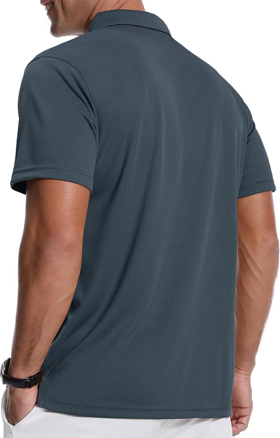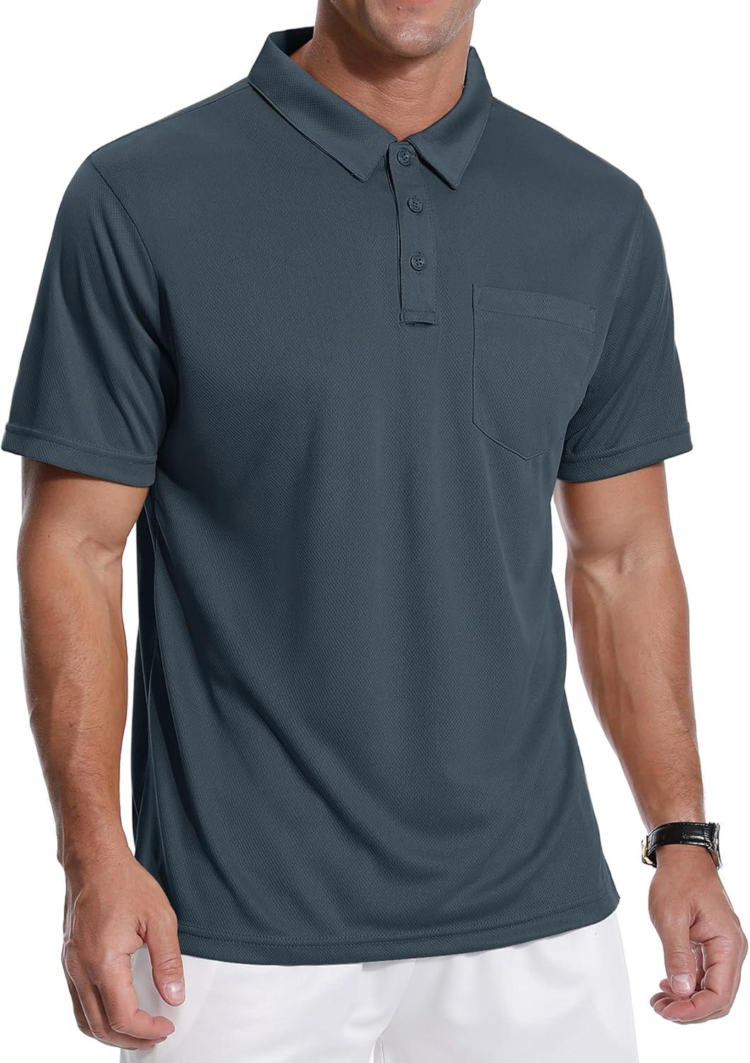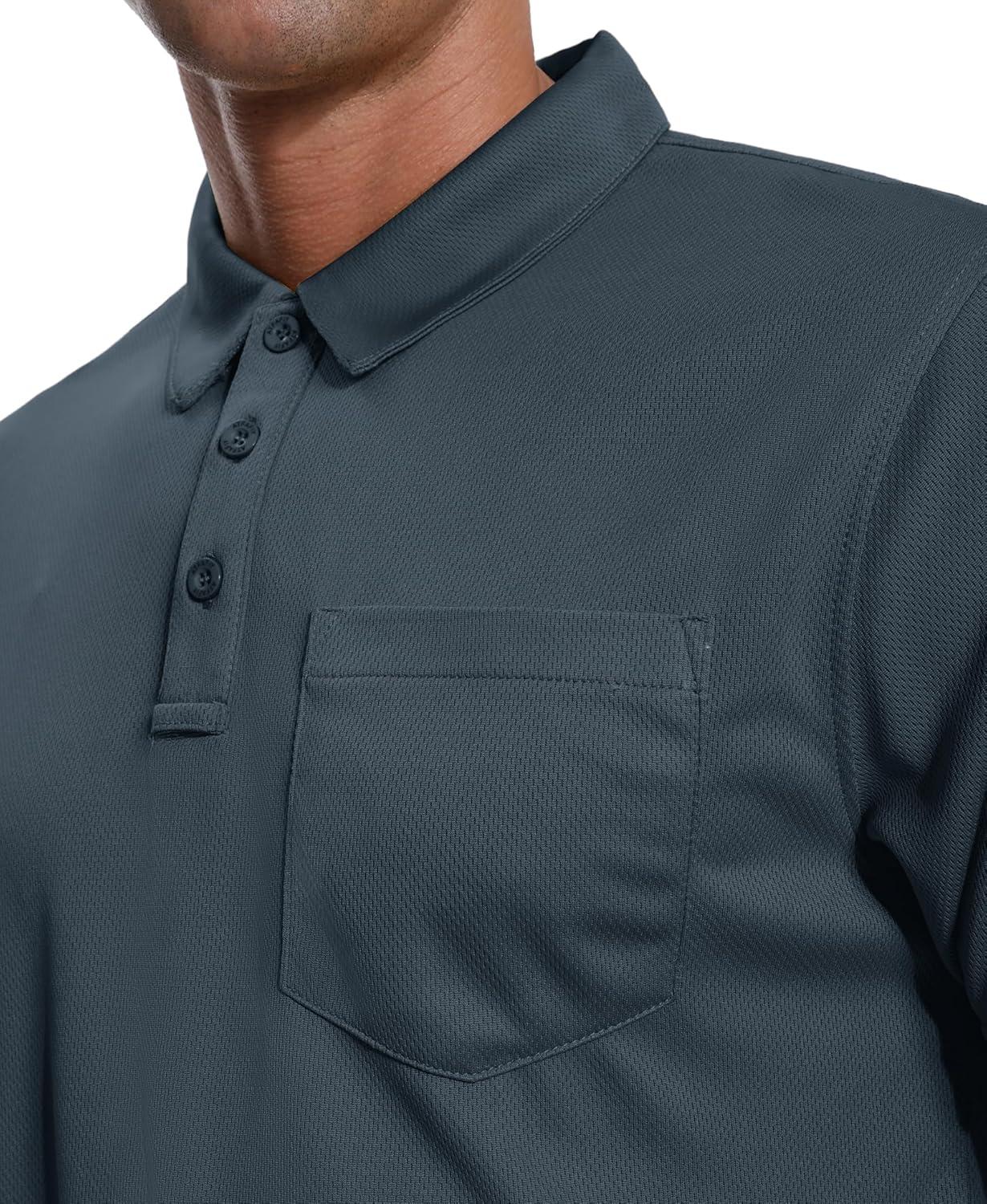 ZITY 3 Pack Polo Shirts for Men with Pocket Short Sleeve Moisture Wicking Outdoor Tactical Shirt Summer Casual(Light Blue+grey+royal Blue)