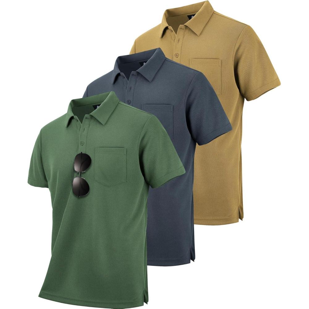 ZITY 3 Pack Polo Shirts for Men with Pocket Short Sleeve Moisture Wicking Outdoor Tactical Shirt Summer Casual(Khaki+grey+army Green)