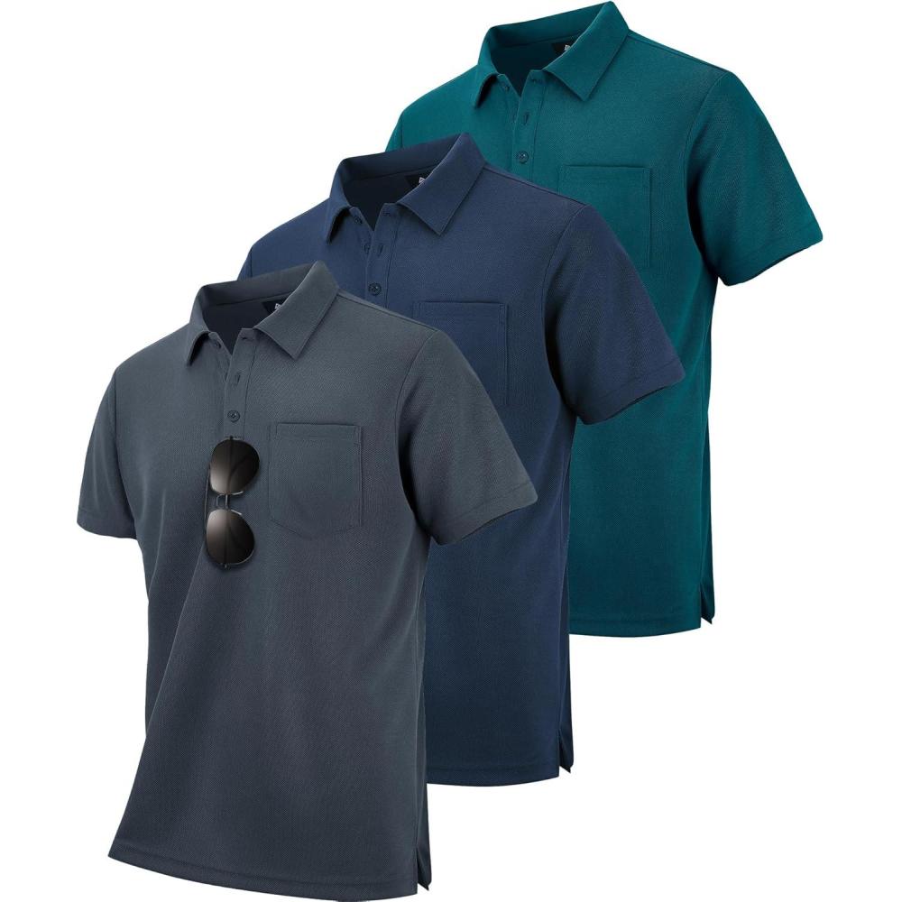 ZITY 3 Pack Polo Shirts for Men with Pocket Short Sleeve Moisture Wicking Outdoor Tactical Shirt Summer Casual(Navy+grey+dark Teal Blue)