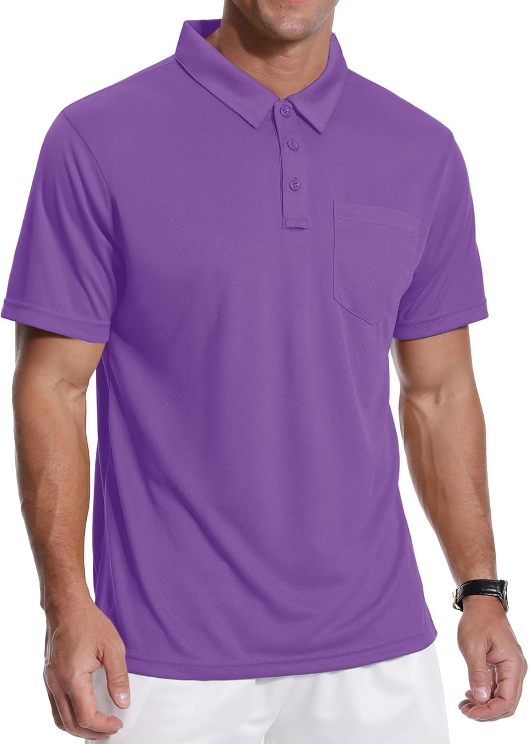 ZITY 3 Pack Polo Shirts for Men with Pocket Short Sleeve Moisture Wicking Outdoor Tactical Shirt Summer Casual(Violet+royal Blue+black)
