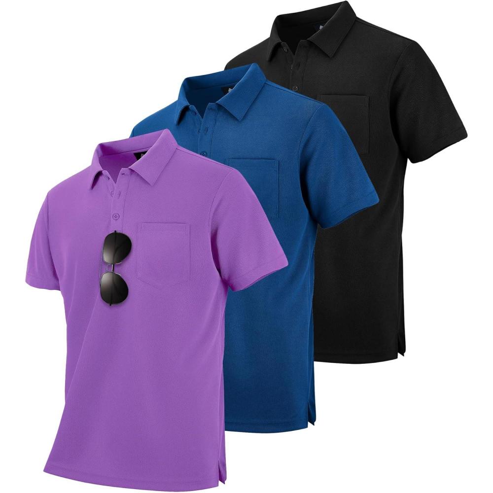 imageZITY 3 Pack Polo Shirts for Men with Pocket Short Sleeve Moisture Wicking Outdoor Tactical Shirt Summer CasualVioletroyal Blueblack