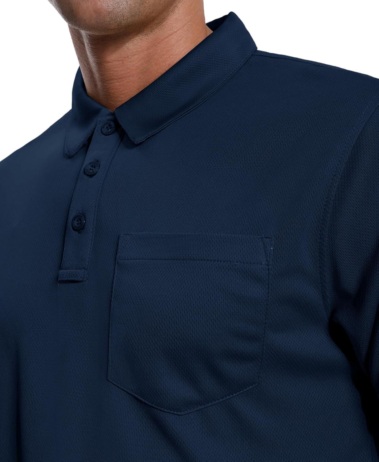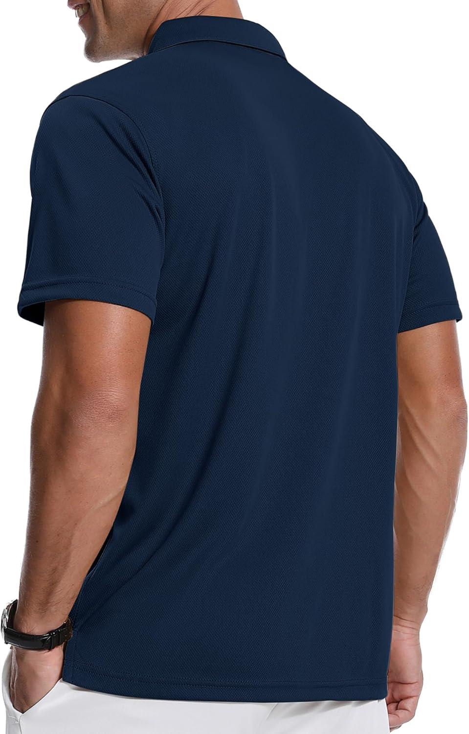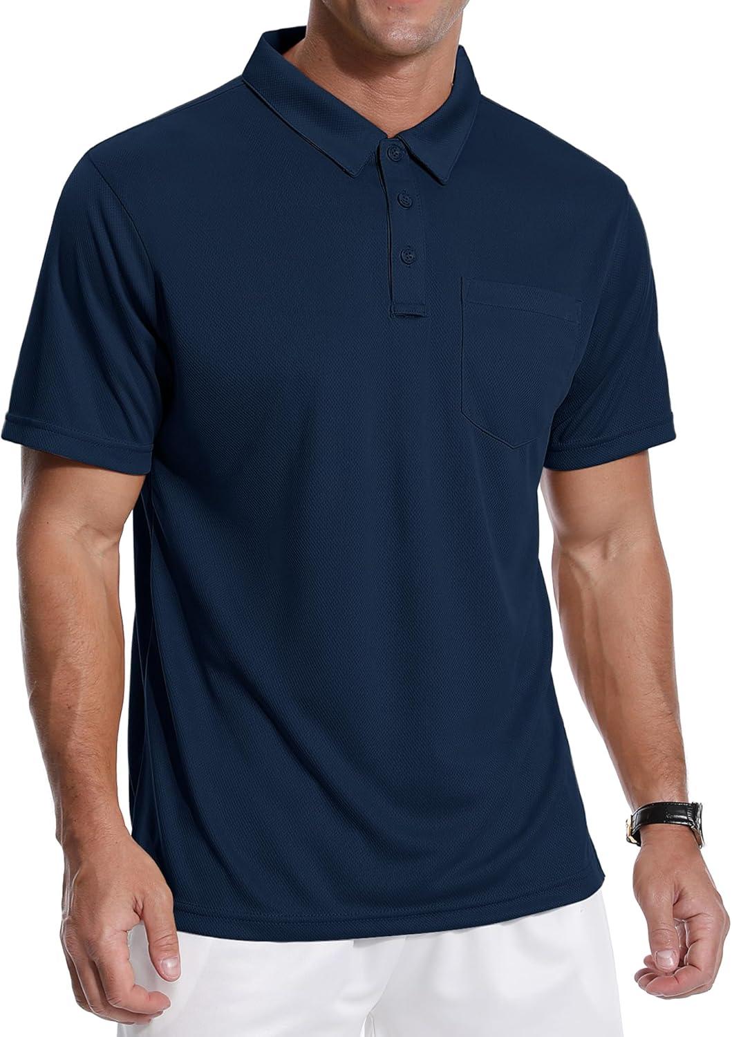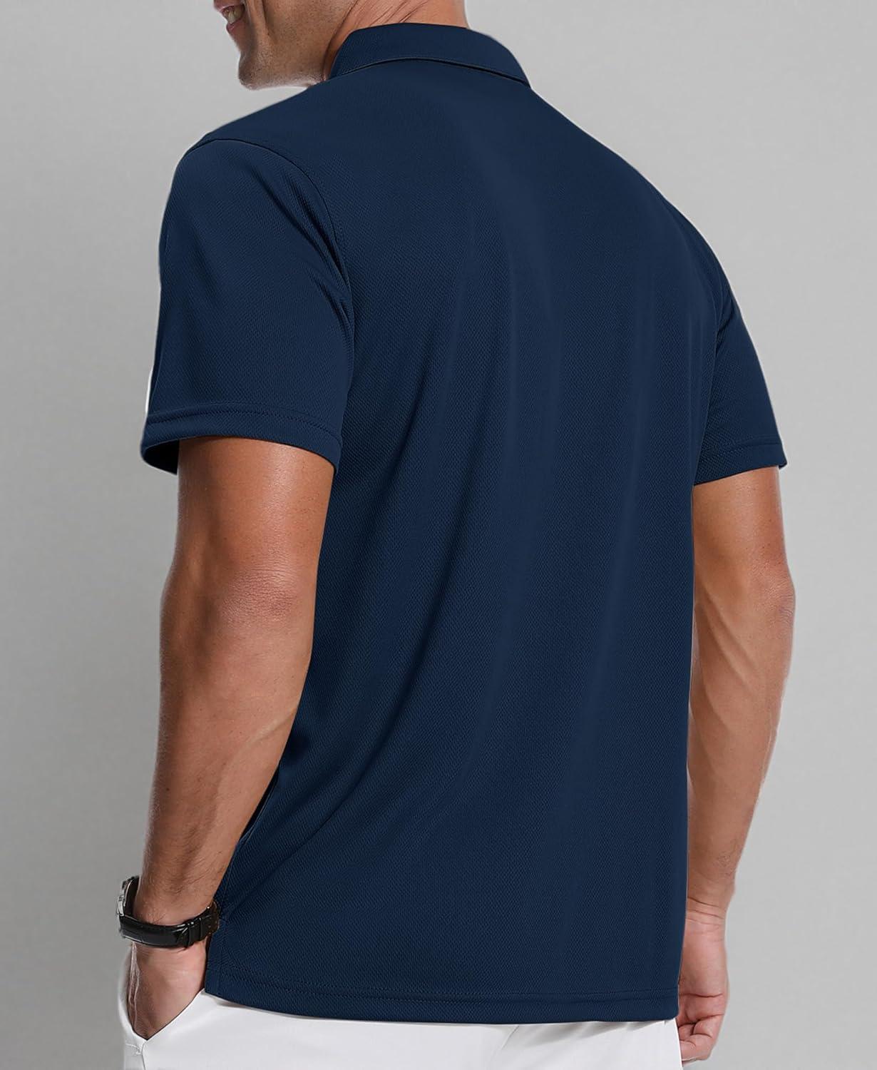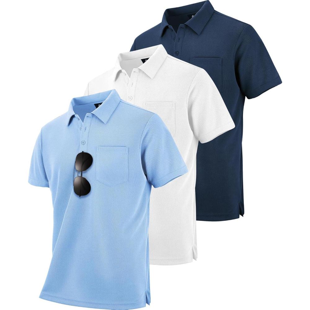 ZITY 3 Pack Polo Shirts for Men with Pocket Short Sleeve Moisture Wicking Outdoor Tactical Shirt Summer Casual(White+light Blue+navy)