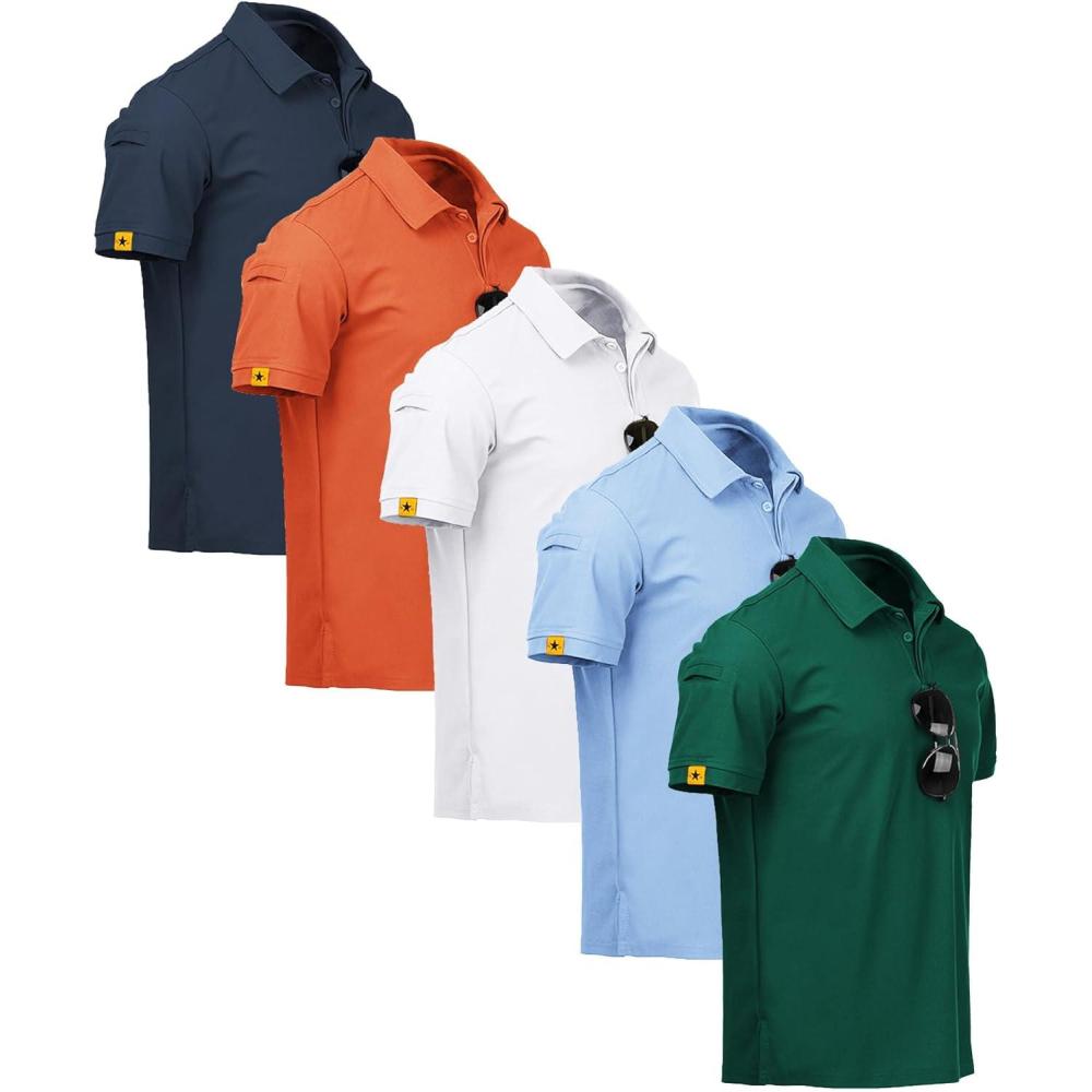 imageZITY 5 Pack Mens Polo Shirt Short Sleeve Sports Golf Tennis TShirt MoistureWicking Summer ShirtsDarkblue Orange White Moon Forest