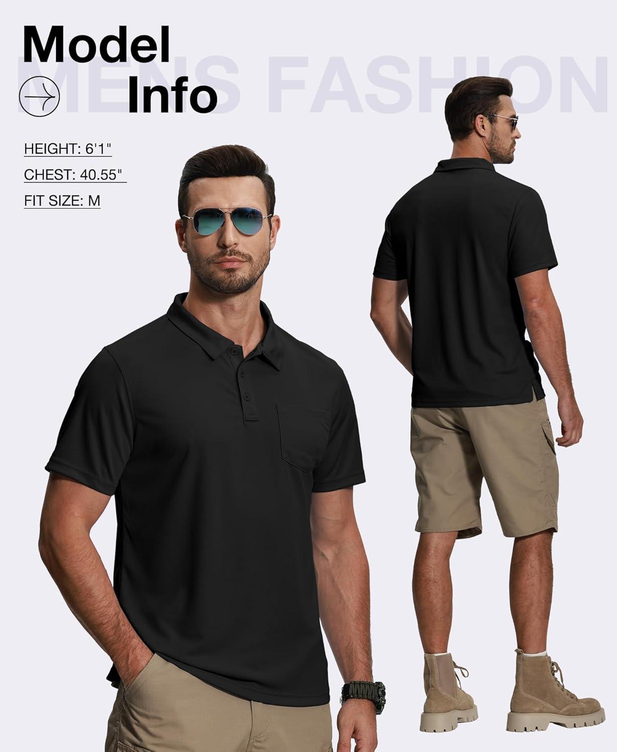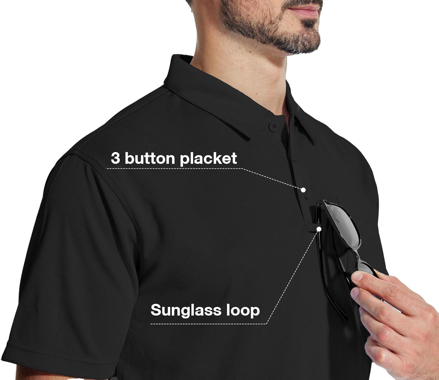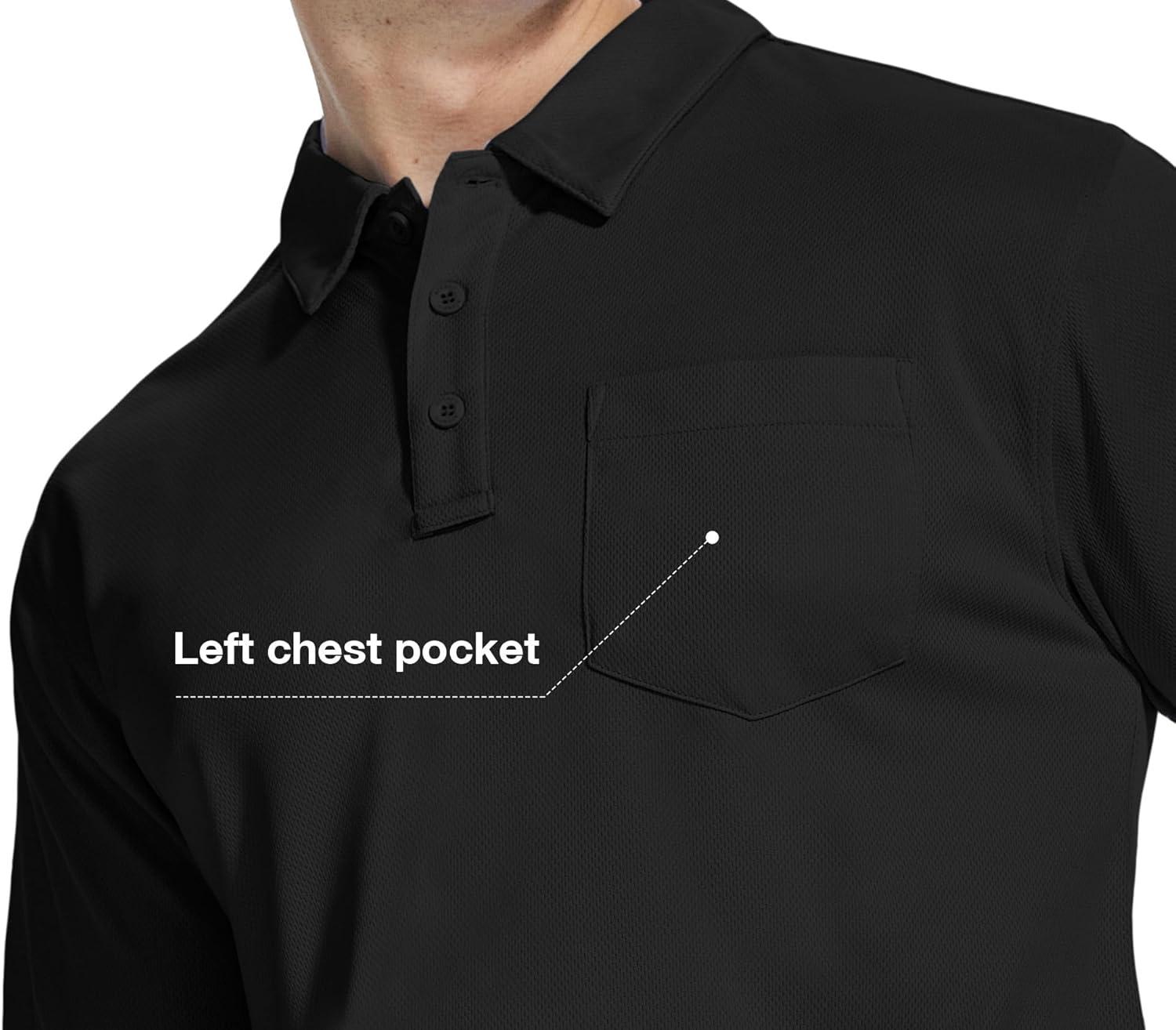ZITY 5 Pack Polo Shirts for Men with Pocket Dry Quickly Short Sleeve Athletic Outdoor Work Collared Shirts(Black)