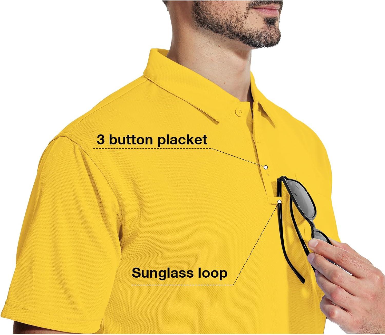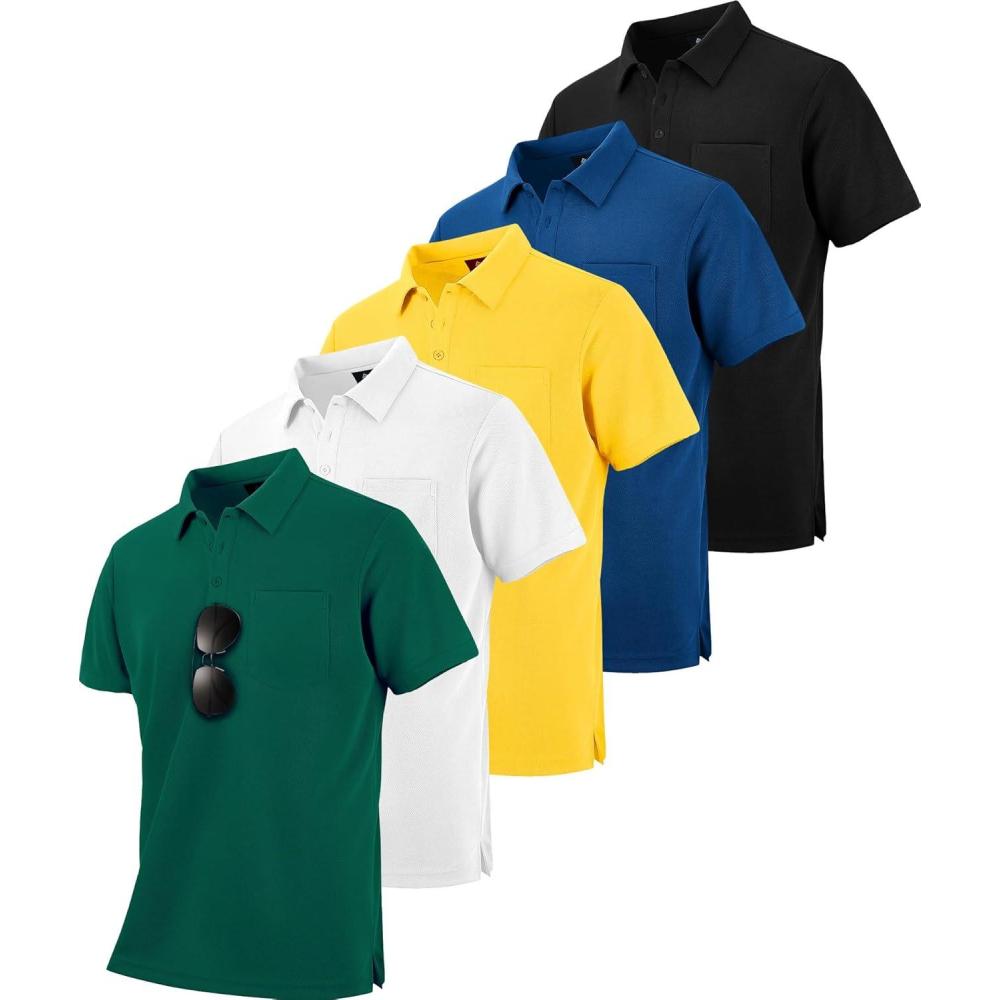 ZITY 5 Pack Polo Shirts for Men with Pocket Dry Quickly Short Sleeve Athletic Outdoor Work Collared Shirts(Black+forest Green+royal Blue+white+dark Yellow)
