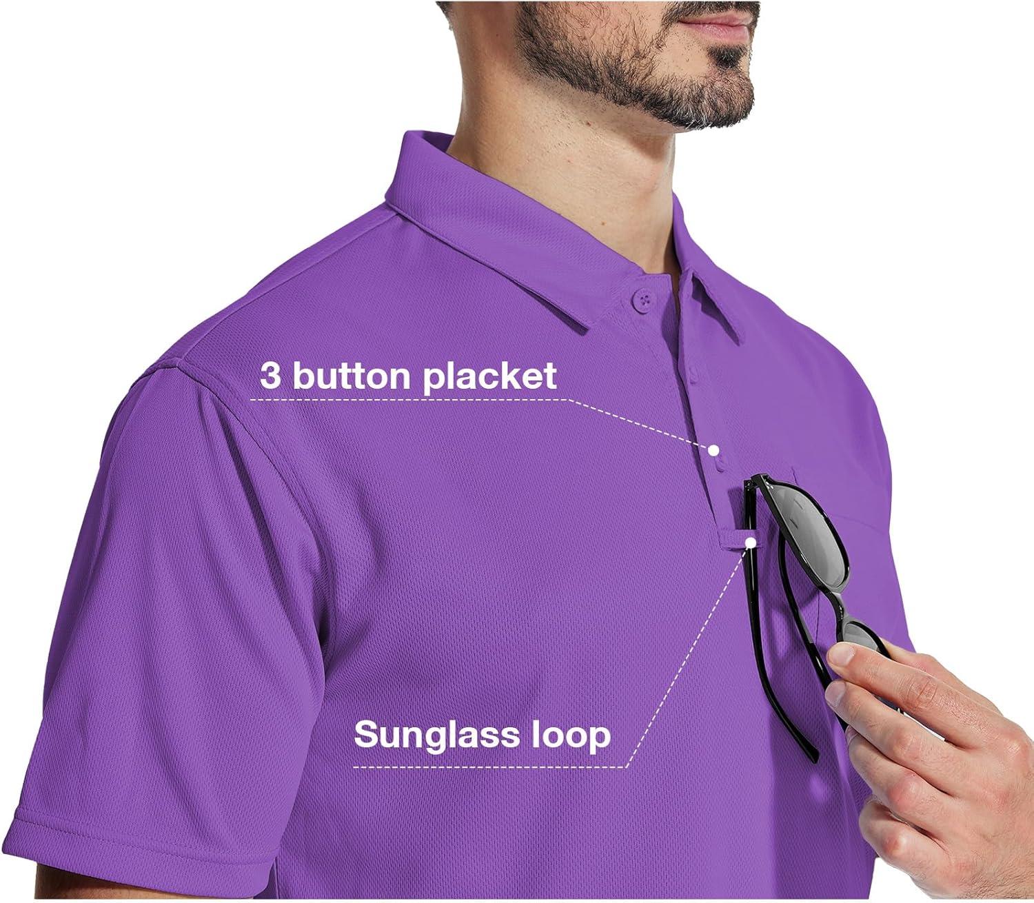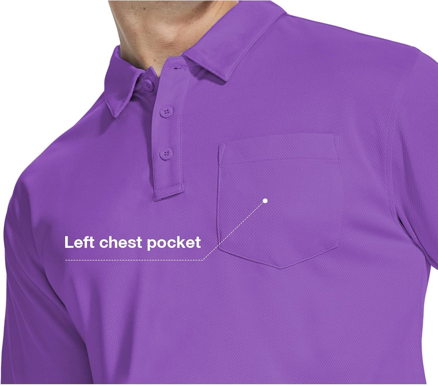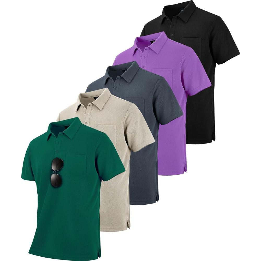 ZITY 5 Pack Polo Shirts for Men with Pocket Dry Quickly Short Sleeve Athletic Outdoor Work Collared Shirts(Black+grey+forest Green+apricot+violet)