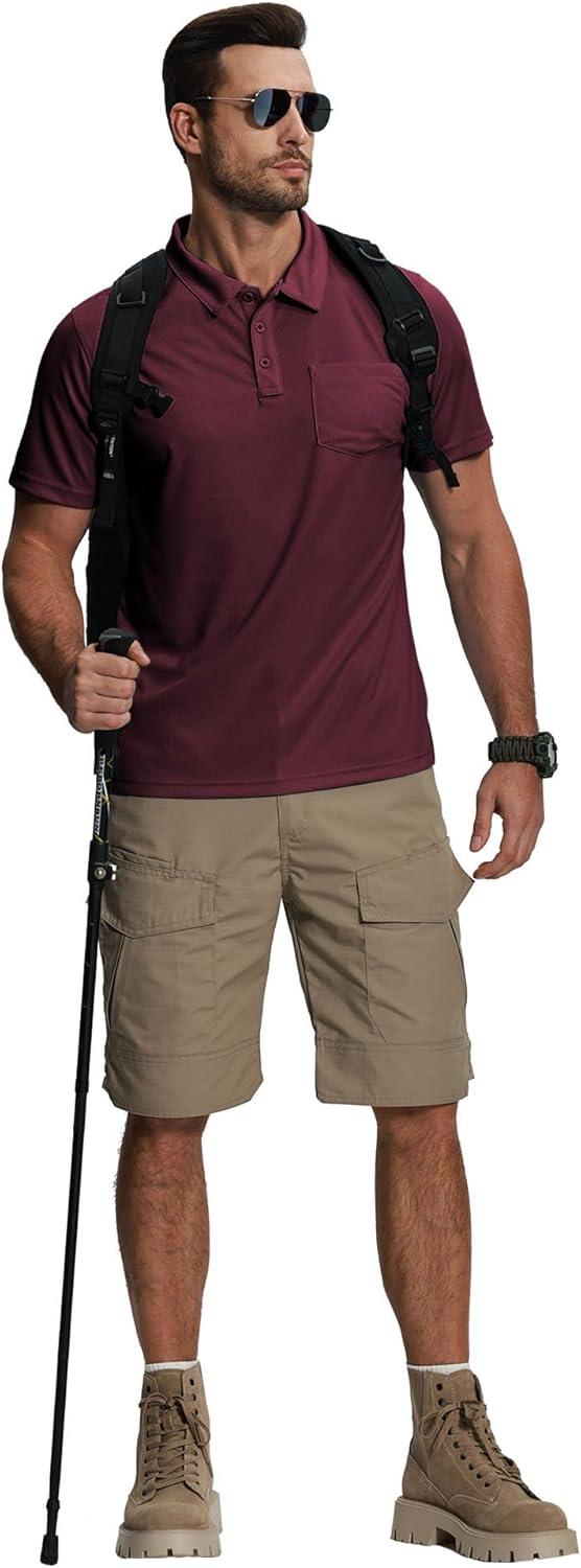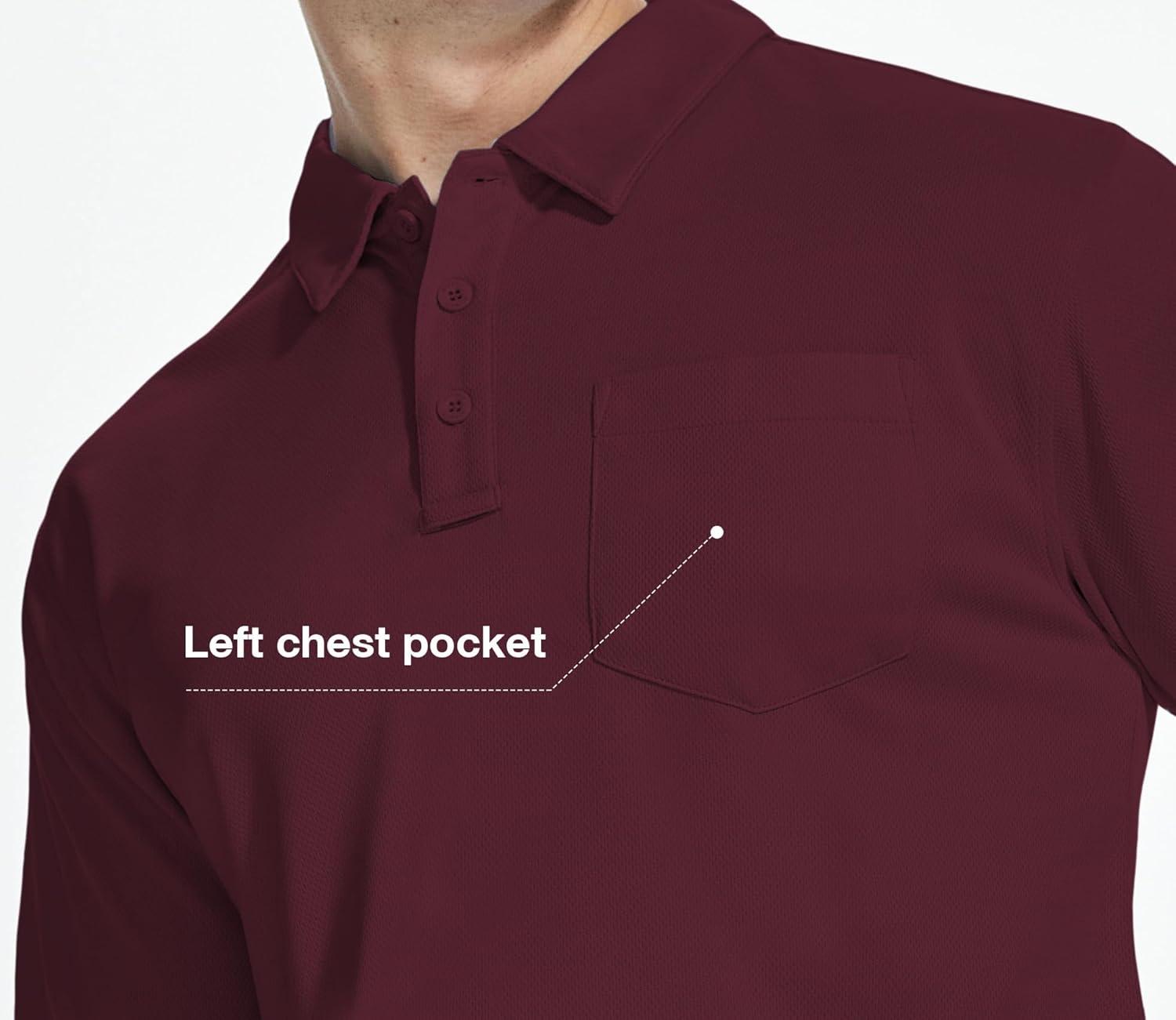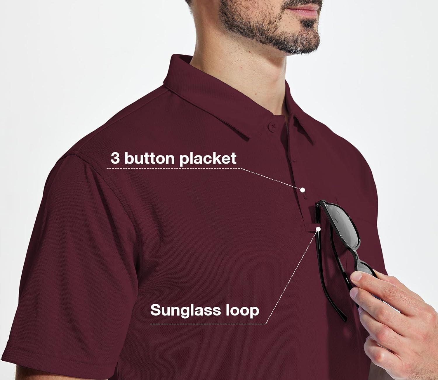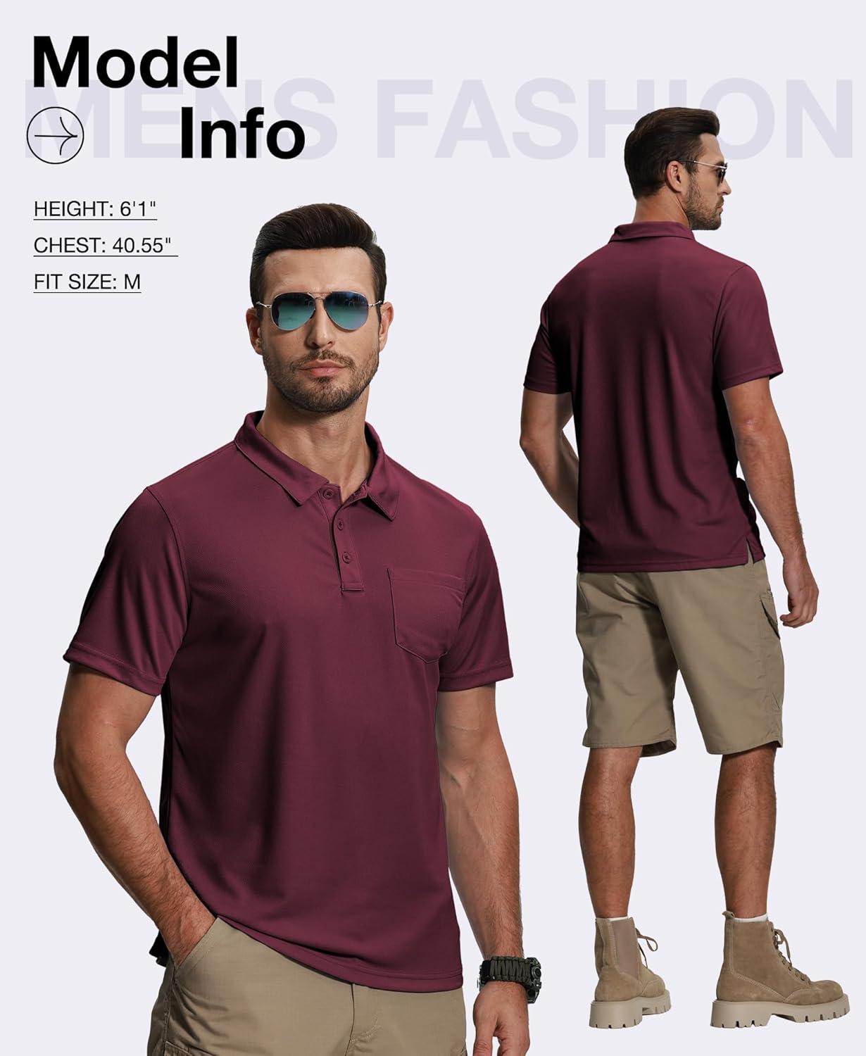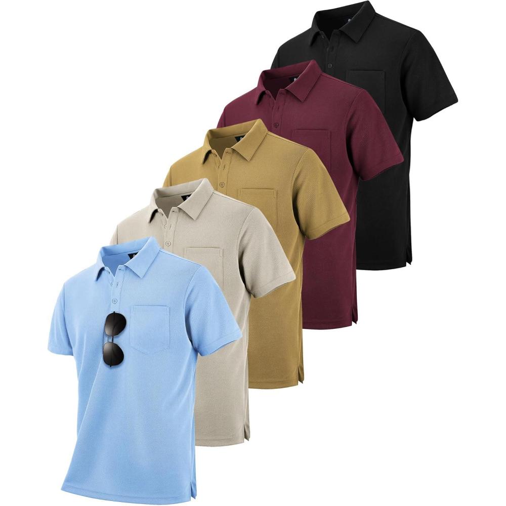 ZITY 5 Pack Polo Shirts for Men with Pocket Dry Quickly Short Sleeve Athletic Outdoor Work Collared Shirts(Black+khaki+apricot+wine Red+light Blue)