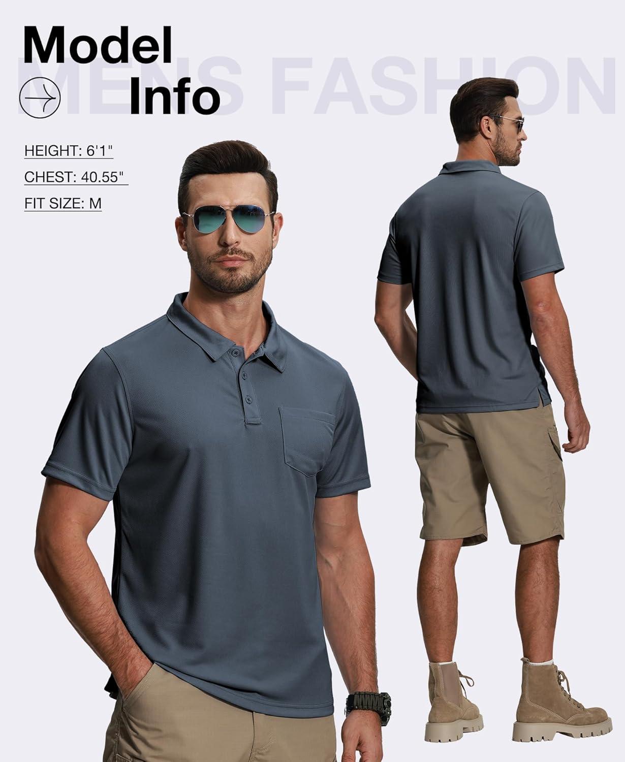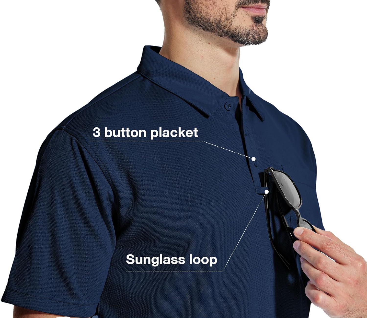 ZITY 5 Pack Polo Shirts for Men with Pocket Dry Quickly Short Sleeve Athletic Outdoor Work Collared Shirts(Royal Blue+army Green+navy+dark Teal Blue+grey)