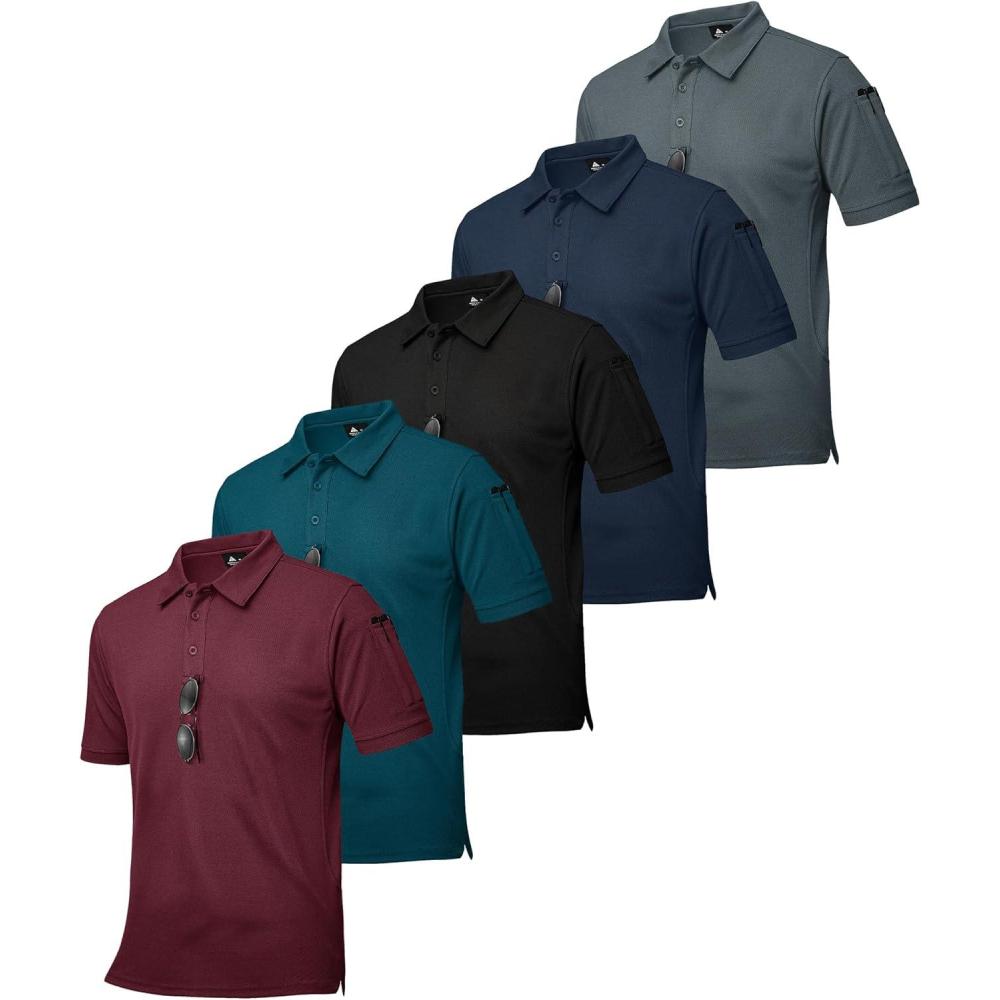ZITY 5 Pack Tactical Polo Shirts for Men Golf Shirt Short Sleeve Athletic Performance Moisture Wicking Work Outdoor Tshirts(Black Gray Navy Green Red)