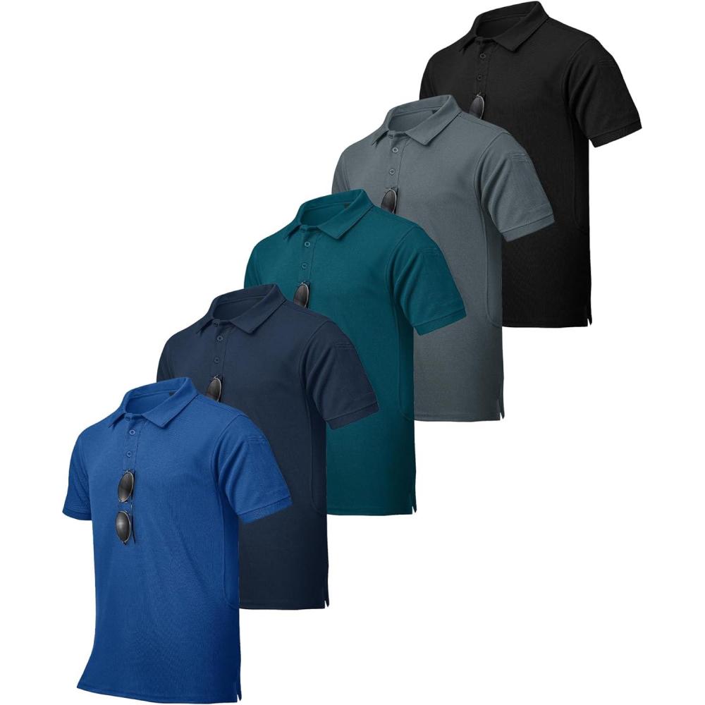 ZITY 5 Pack Tactical Polo Shirts for Men Golf Shirt Short Sleeve Athletic Performance Moisture Wicking Work Outdoor Tshirts(Black Grey Navy Blue Teal)