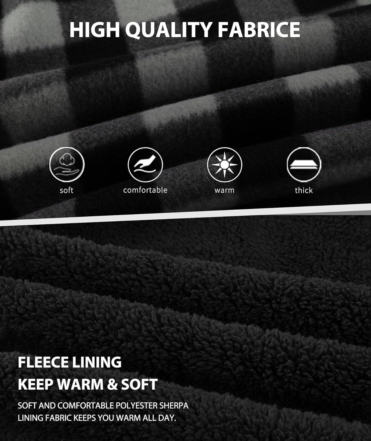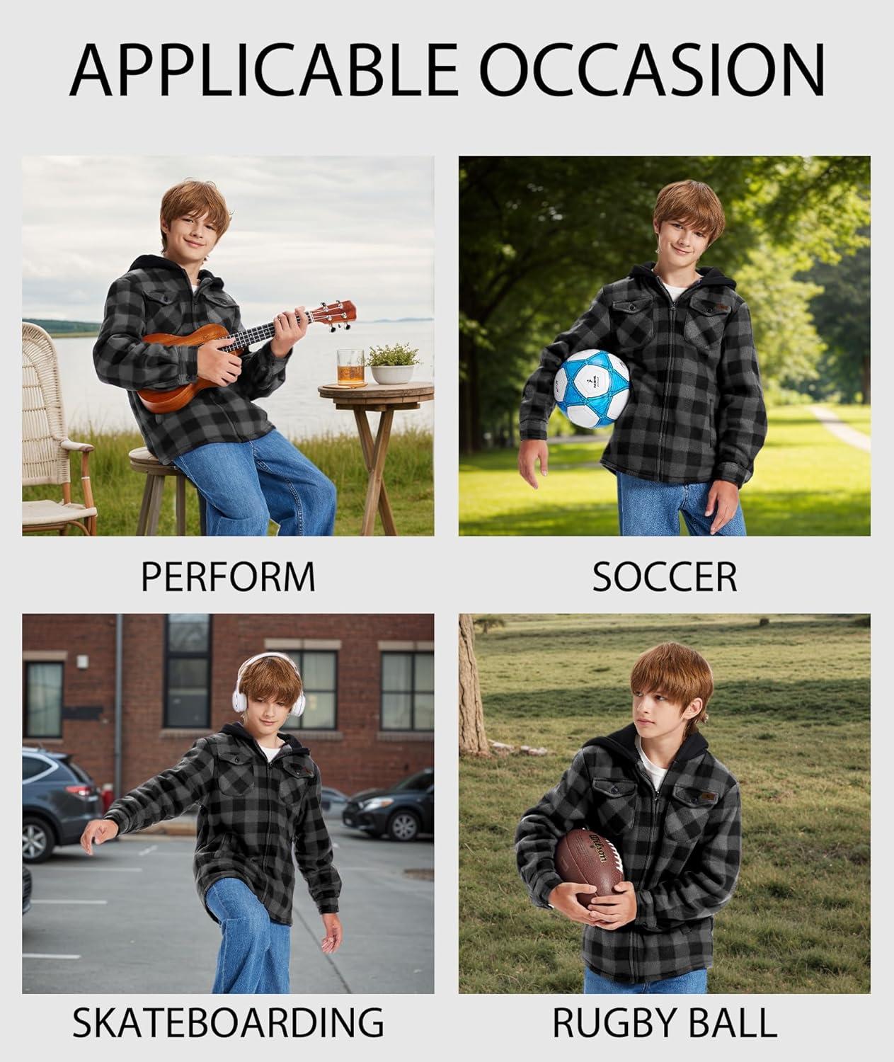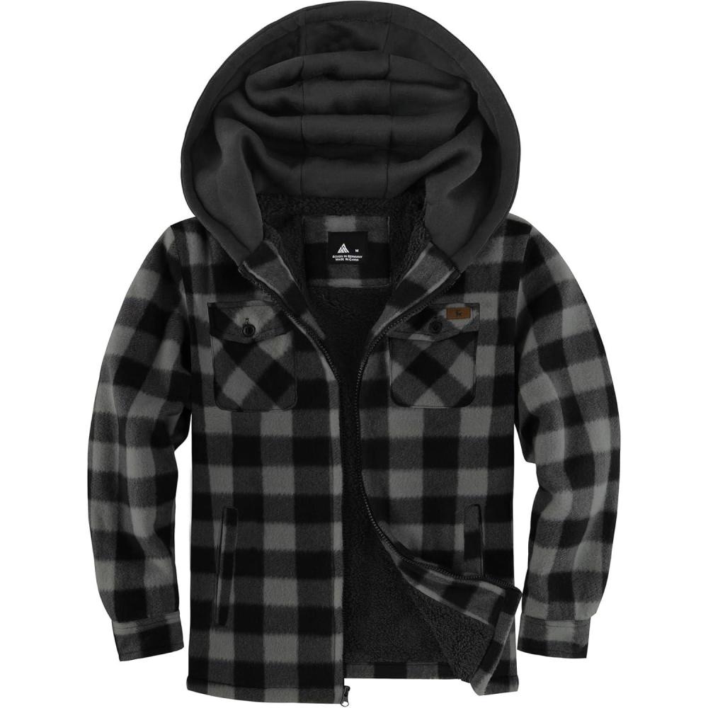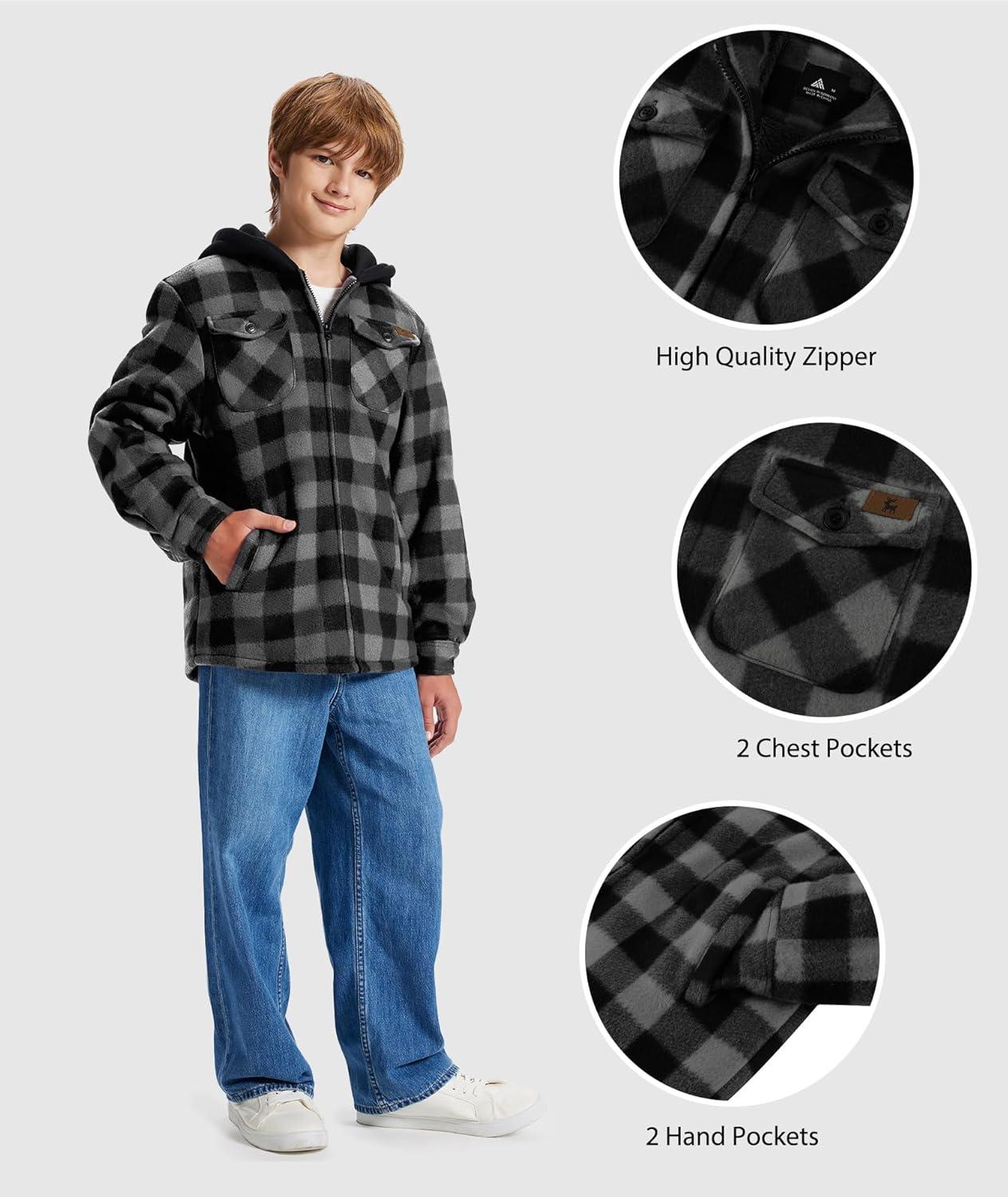 ZITY Boys Flannel Shirt Jacket Fleece Sherpa Lined Plaid Jackets Unisex Coat Full Zip Hoodie Girls Winter Outwear 6-15 Years(Dark Grey)