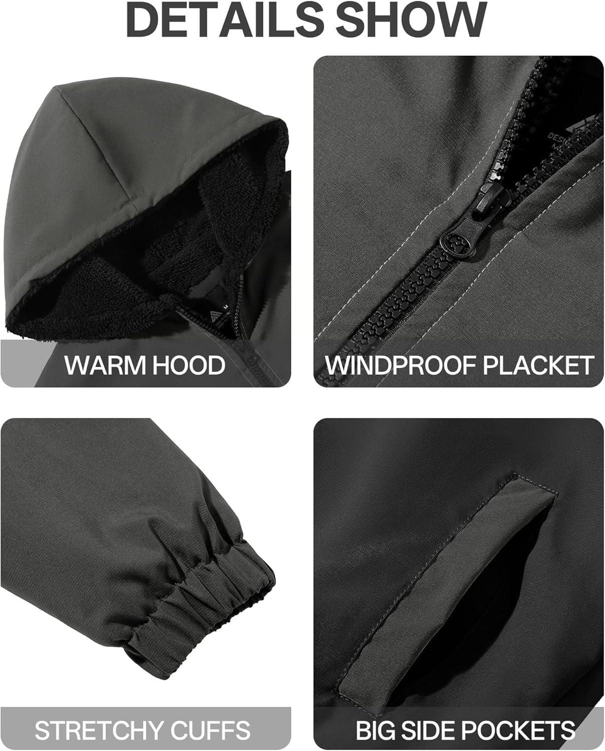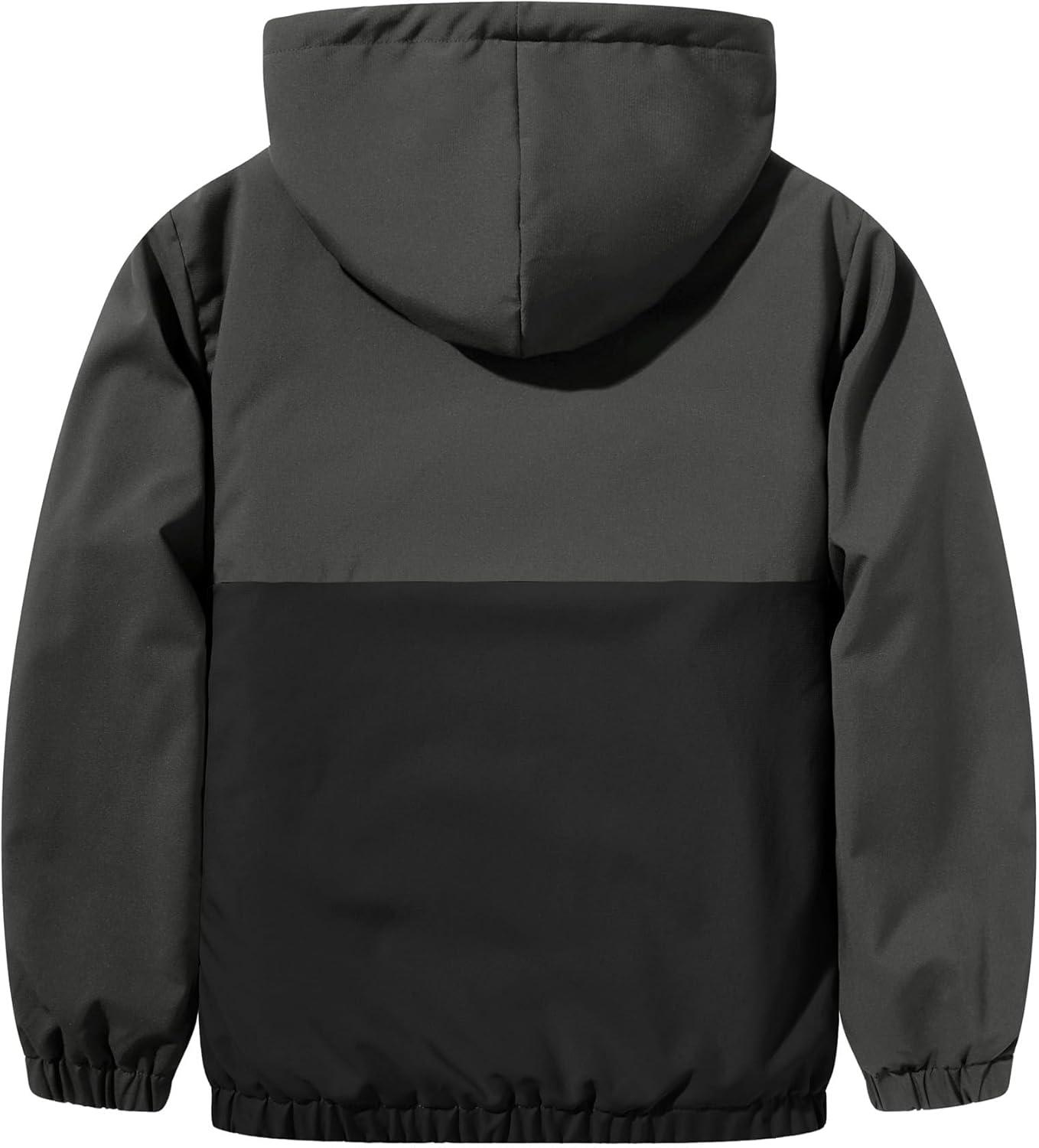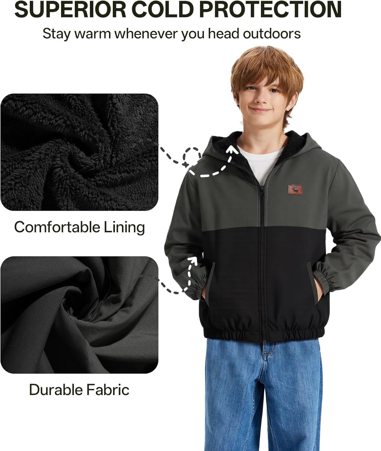 ZITY Boys Fleece Jacket Sherpa Lined Hoodie Zip Up Sweatshirt Warm Outerwear Winter Coat for Kids 6-15 Years(Grey Black)
