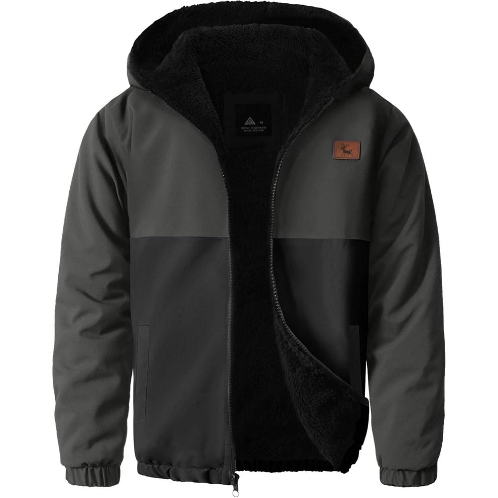 imageZITY Boys Fleece Jacket Sherpa Lined Hoodie Zip Up Sweatshirt Warm Outerwear Winter Coat for Kids 615 YearsGrey Black
