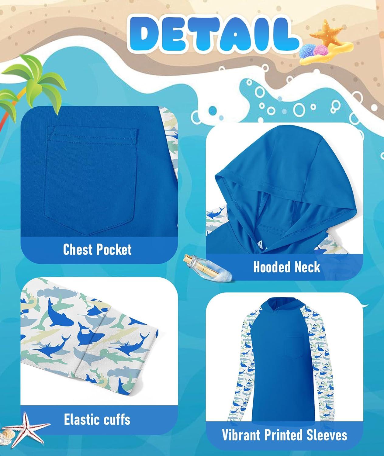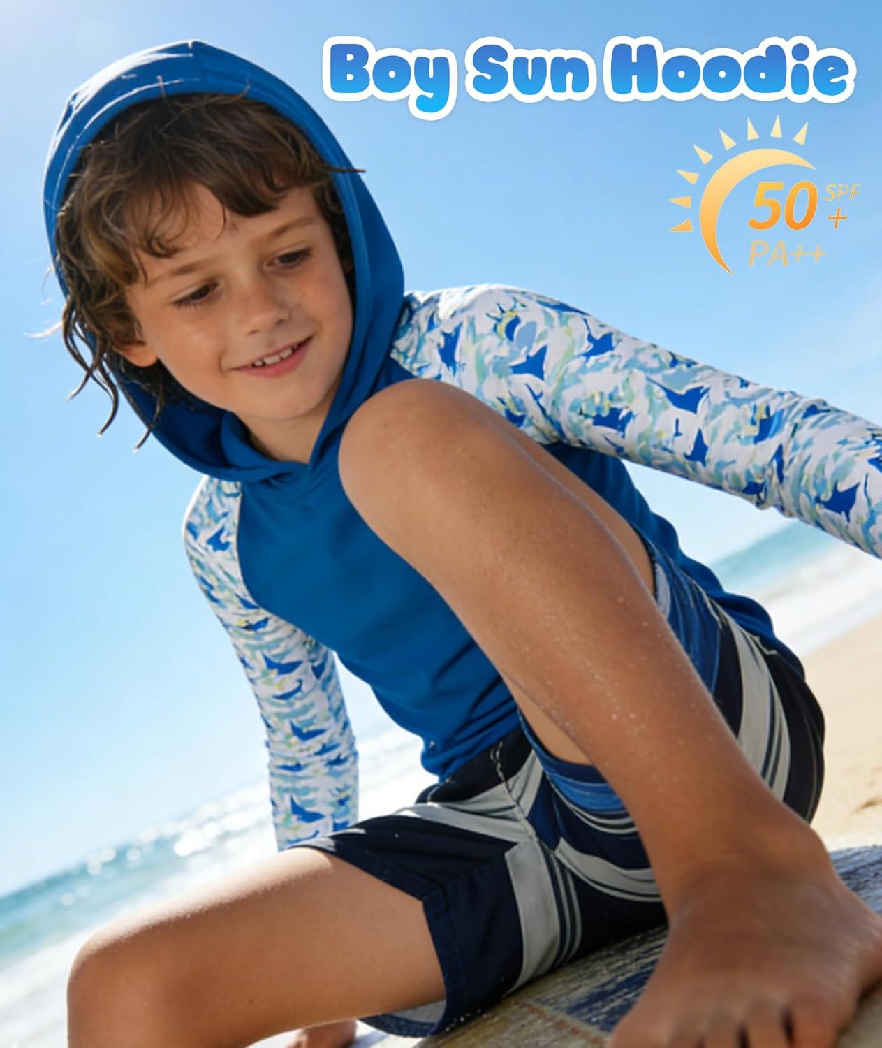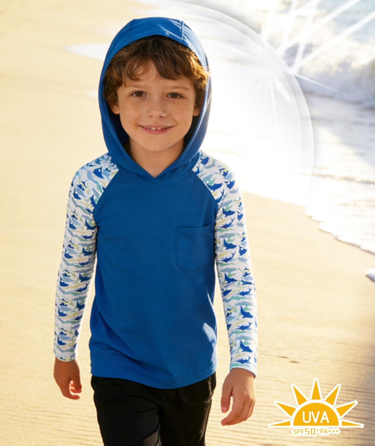 ZITY Boys Rash Guard Hooded Fishing Shirt Kids UPF 50+ Long Sleeve Sun Hoodie Youth UV Protection Beach Swim Shirts(Cobalt Blue)
