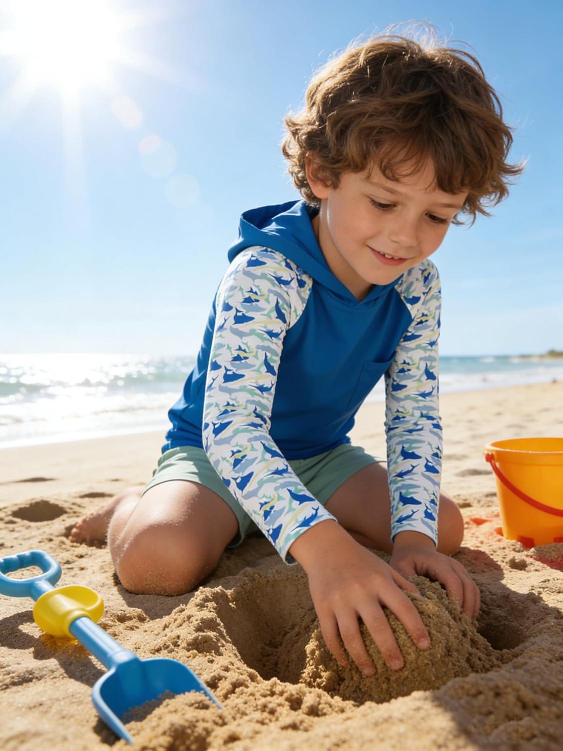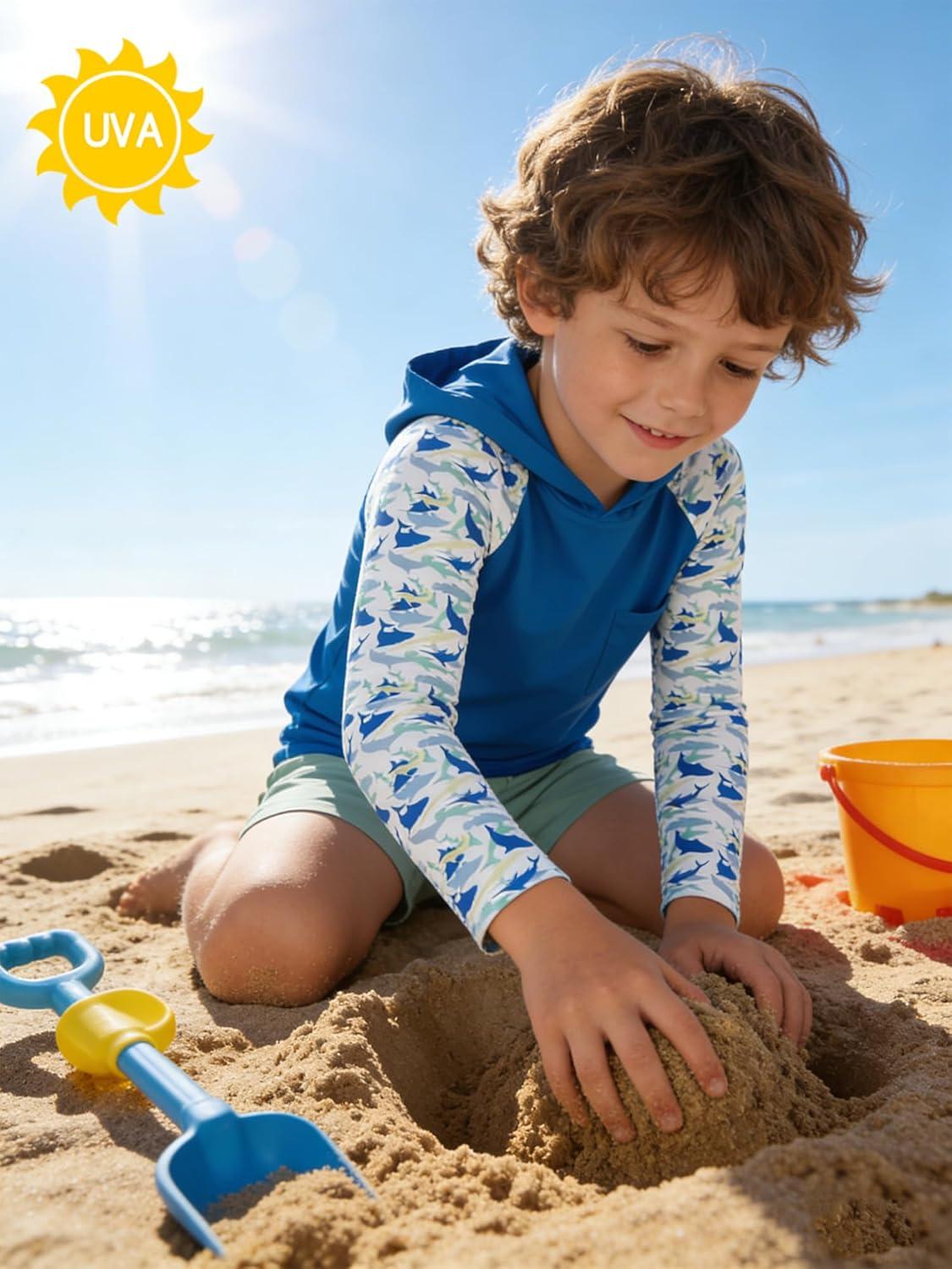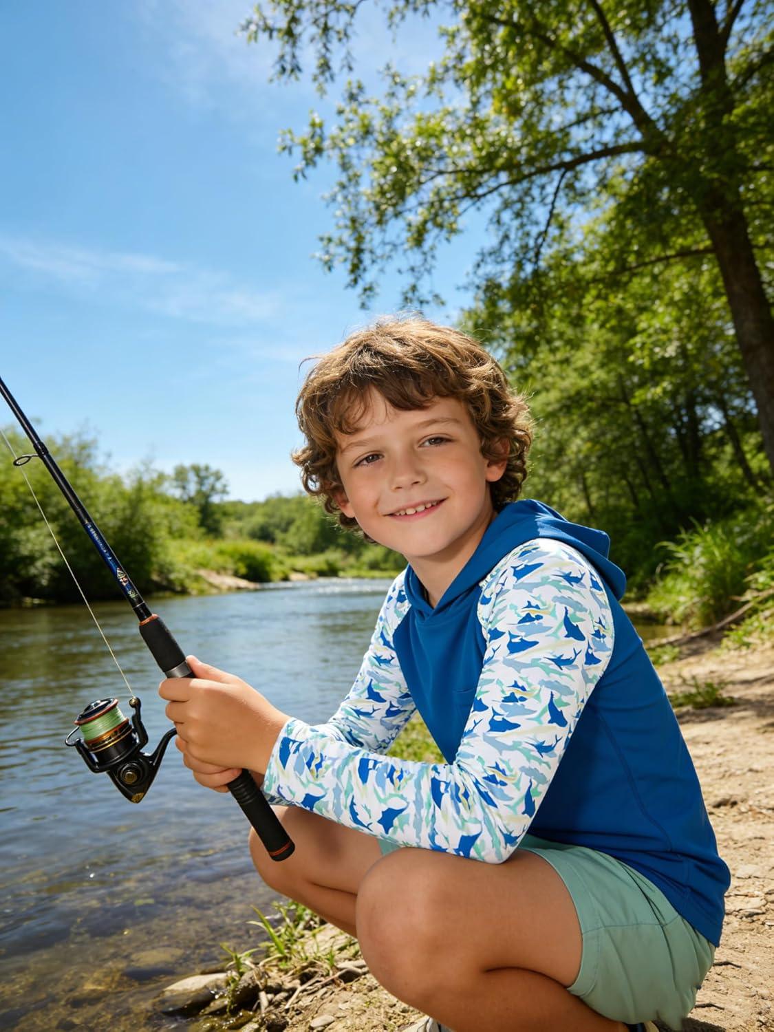ZITY Boys Rash Guard Hooded Fishing Shirt Kids UPF 50+ Long Sleeve Sun Hoodie Youth UV Protection Beach Swim Shirts(Cobalt Blue)