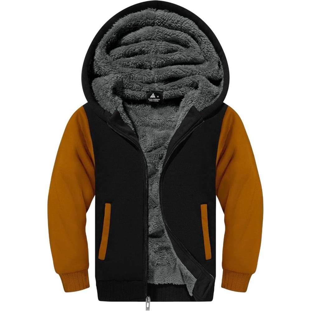 ZITY Boys Zip Up Hoodie Fleece Jacket Kids Sherpa Lined Sweatshirts Outerwear Unisex Warm Winter Coat 6-15 Years Old(Black Brown)