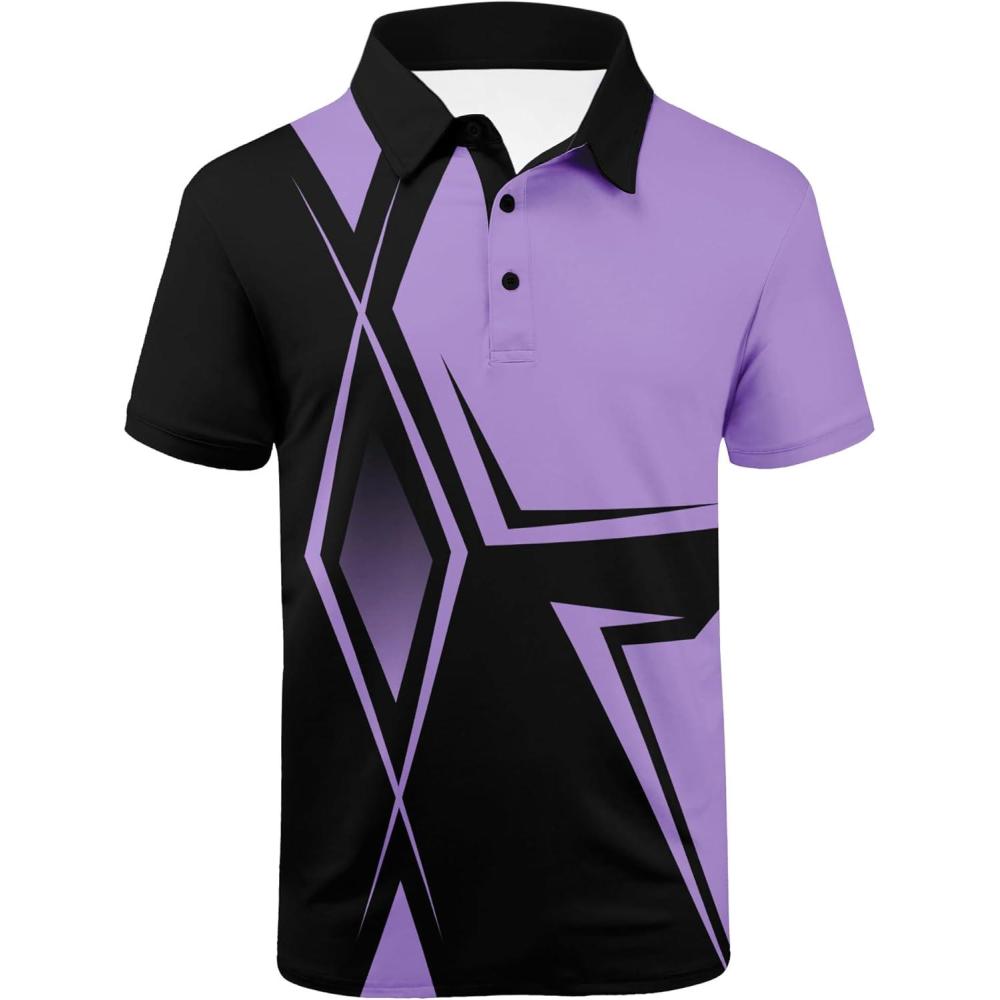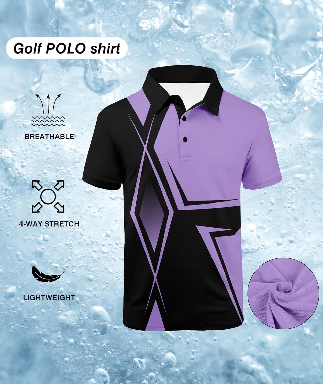 ZITY Golf Polo Shirts for Men Short Sleeve Athletic Tennis T-Shirt(Black Purple)