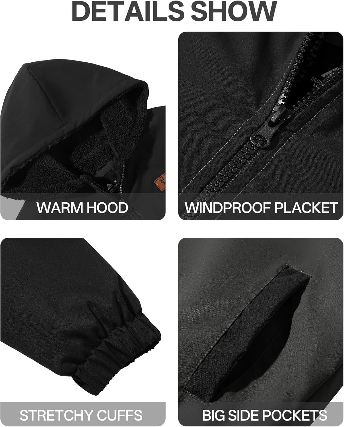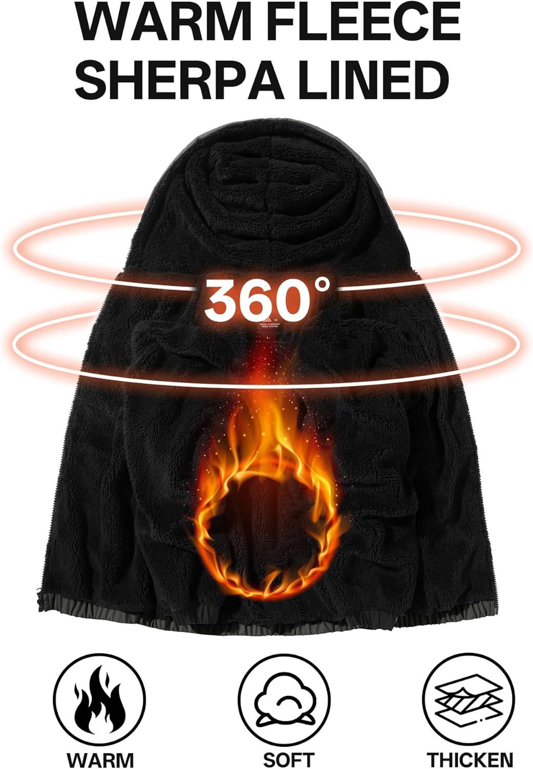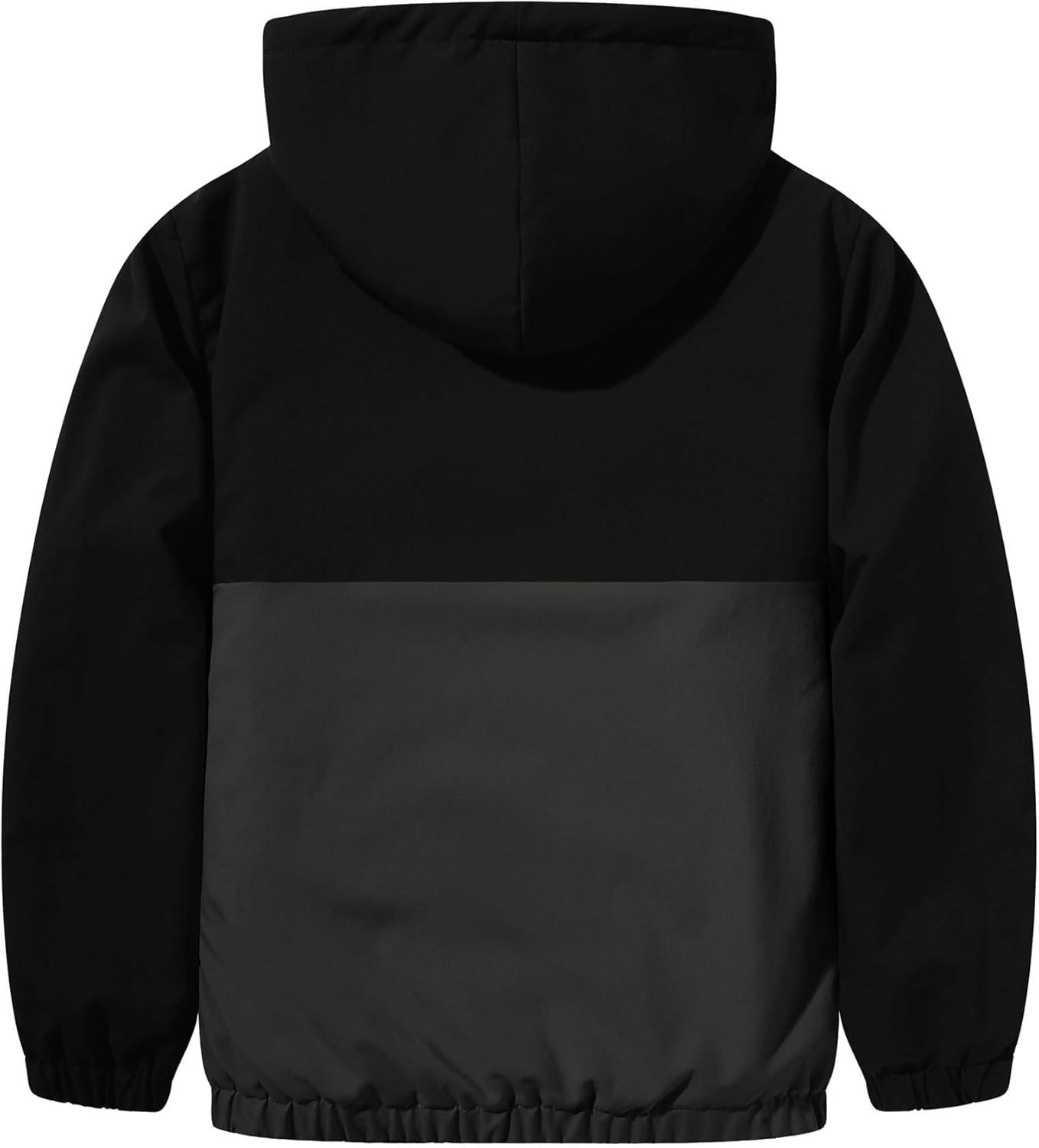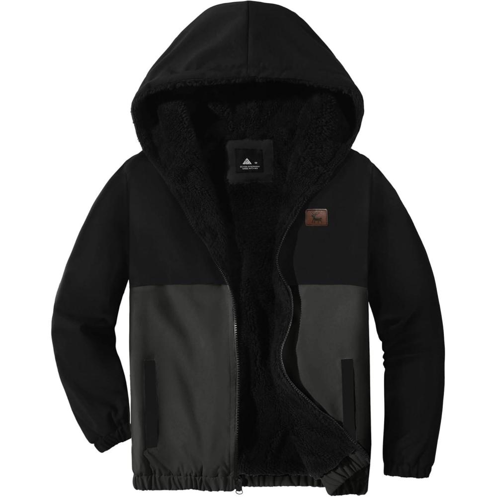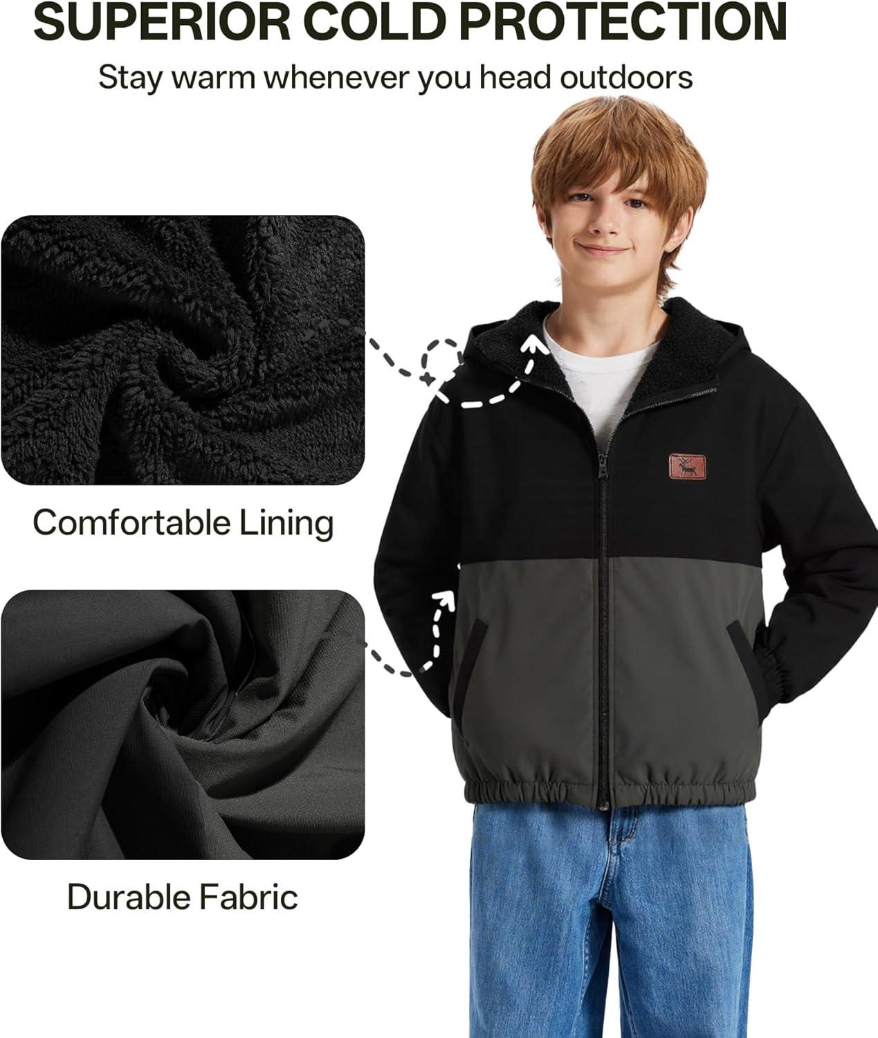 ZITY Jacket for Boy Heavyweight Fleece Hoodie Full Zip Up Thick Sherpa Lined Casual Sweatshirt with Pocket(Black Grey)