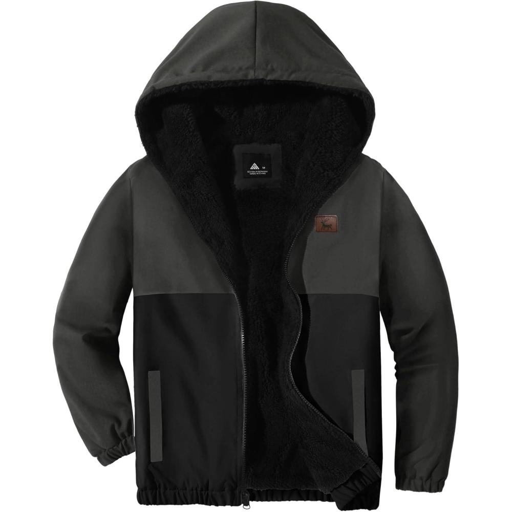 ZITY Jacket for Boy Heavyweight Fleece Hoodie Full Zip Up Thick Sherpa Lined Casual Sweatshirt with Pocket(Grey Black)