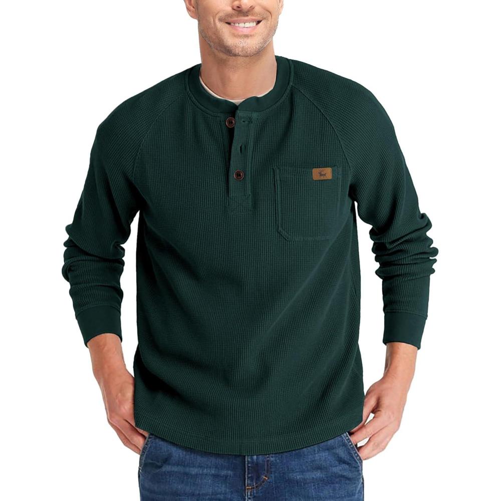 ZITY Long Sleeve Henley Shirts for Men Casual Waffle Thermal Fashion Pullover 3-Button T-Shirt with Pocket(Z-dark Blackish Green)