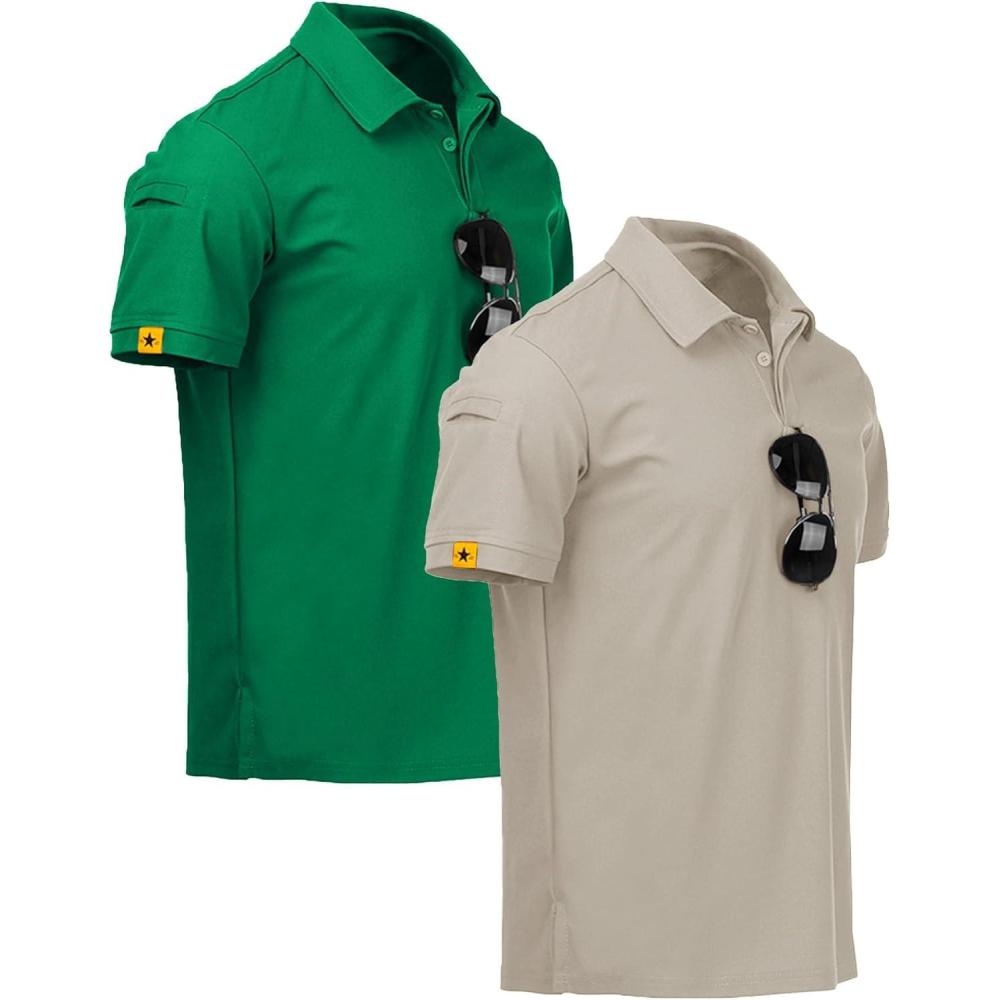 ZITY Mens 2 Pack Polo Shirts Short Sleeve Performance Sports Golf Shirt for Men Tactical Shirt(Grassgreen Lightkhaki)