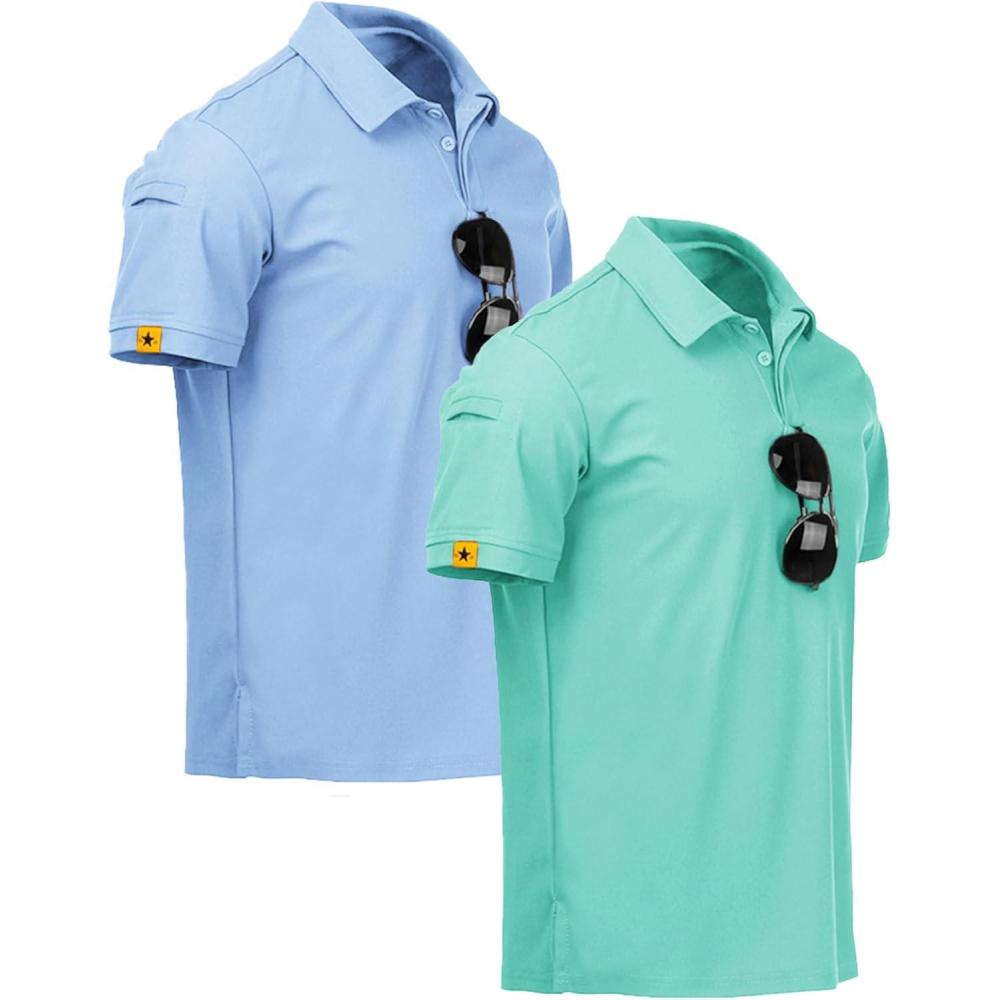 ZITY Mens 2 Pack Polo Shirts Short Sleeve Performance Sports Golf Shirt for Men Tactical Shirt(Moon Turquoise Blue)