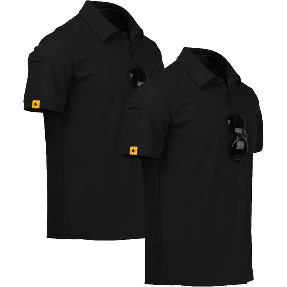 ZITY Mens 2 Pack Polo Shirts Short Sleeve Performance Sports Golf Shirt for Men Tactical Shirt(Pure Black)