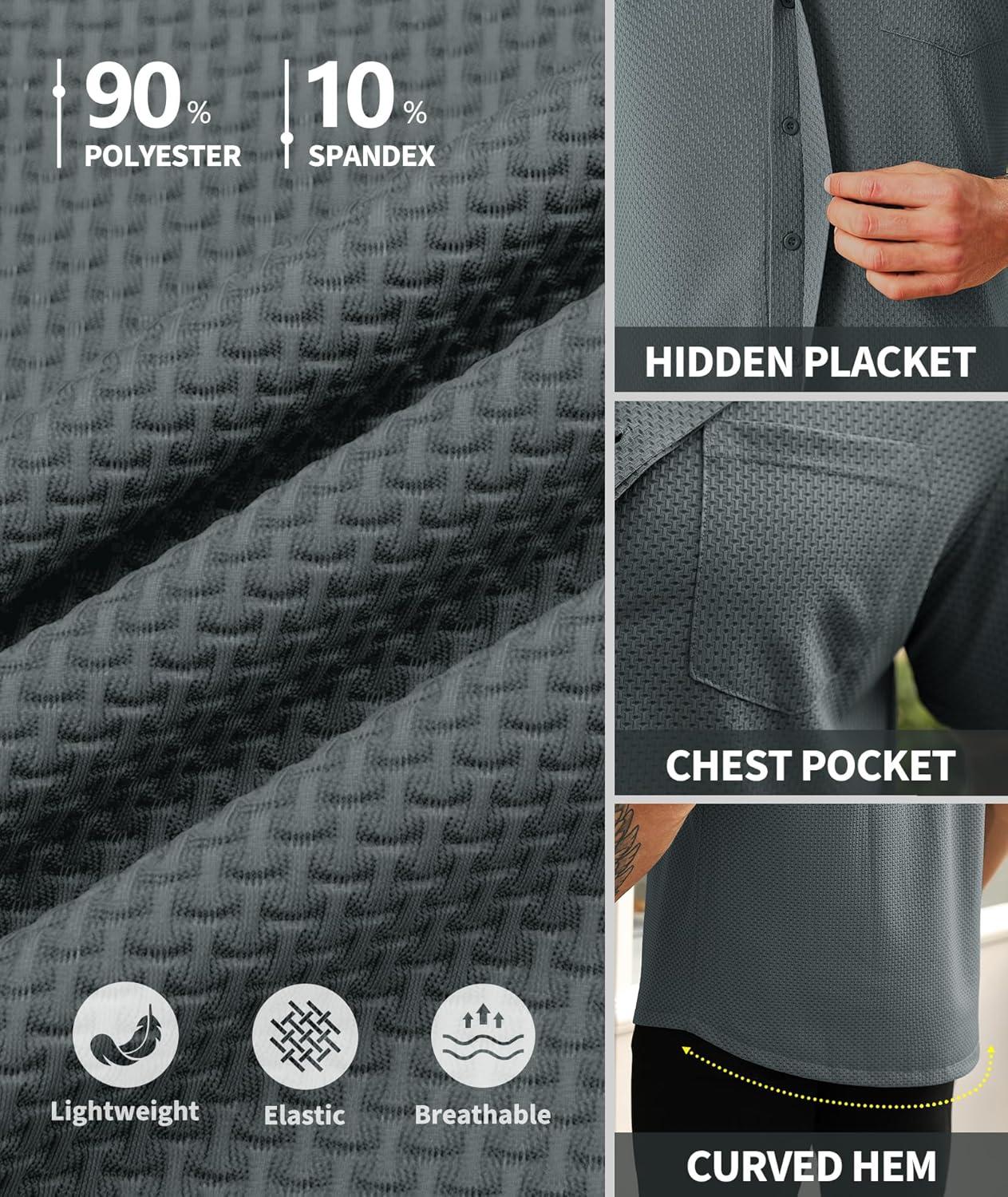 ZITY Mens Casual Hawaiian Beach Vacation Summer Shirt Button Down Short Sleeve Textured Shirts(Dark Grey)