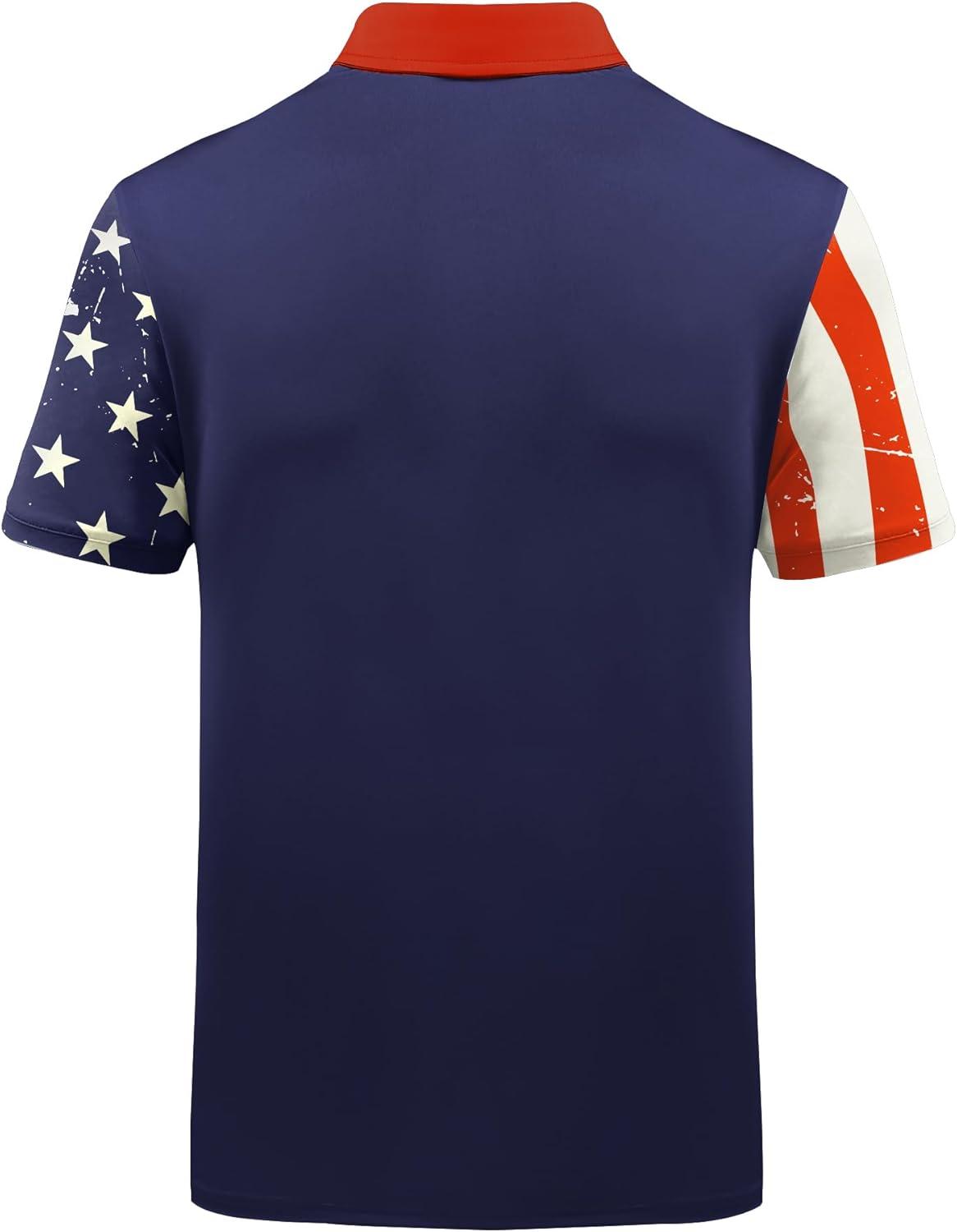 ZITY Men’s Flag Golf Polo Shirts Short Sleeve Tactical Collared Shirt Men Outdoor Moisture Wicking Shirts(Navy Red)