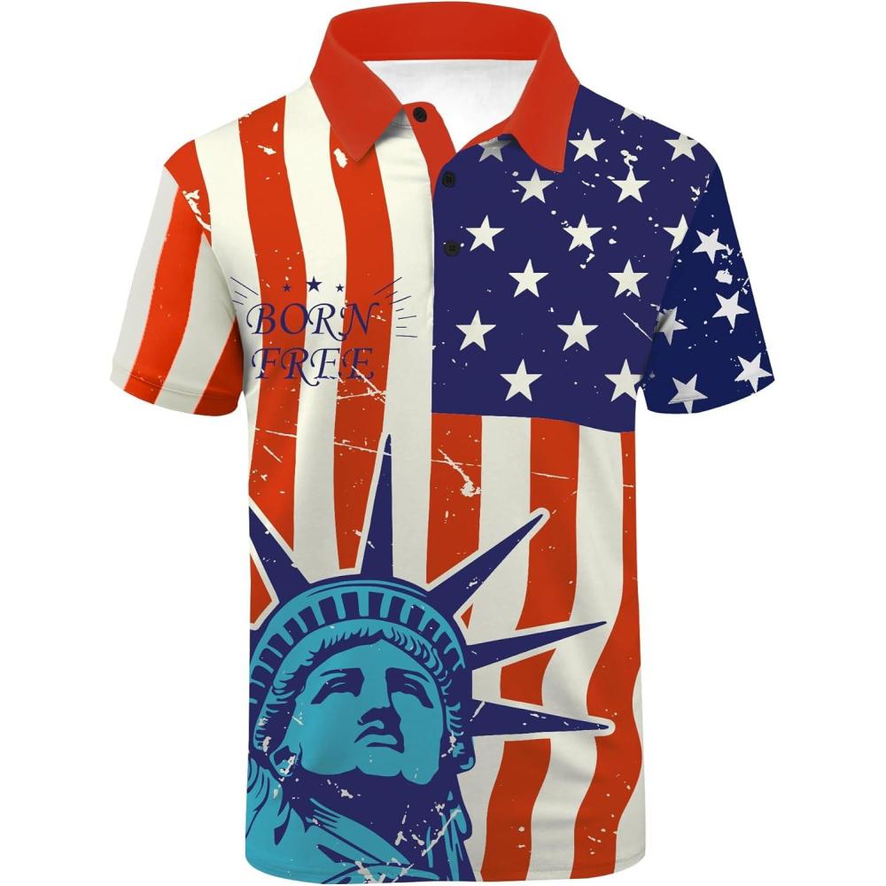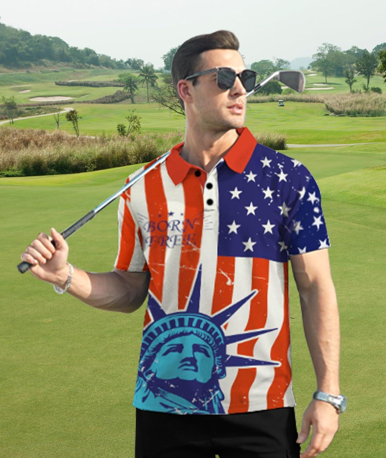 ZITY Men’s Flag Golf Polo Shirts Short Sleeve Tactical Collared Shirt Men Outdoor Moisture Wicking Shirts(Red)