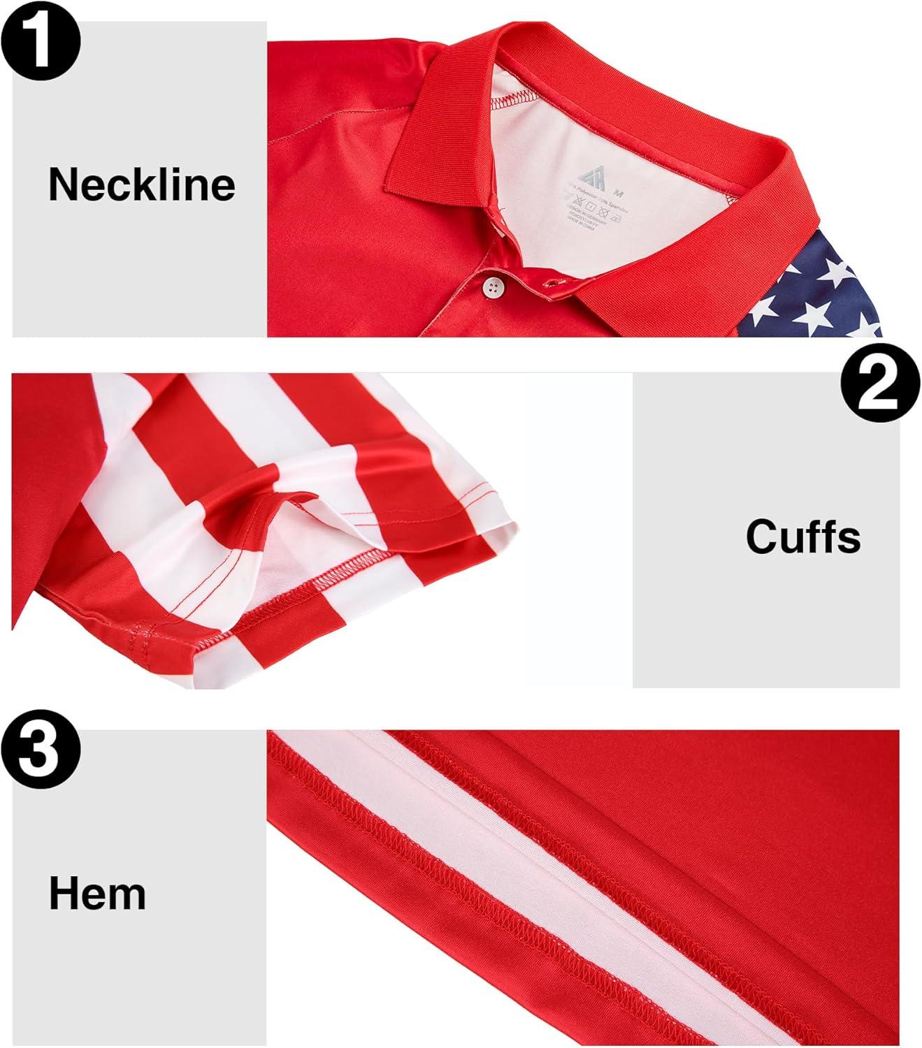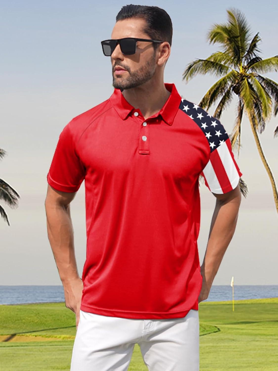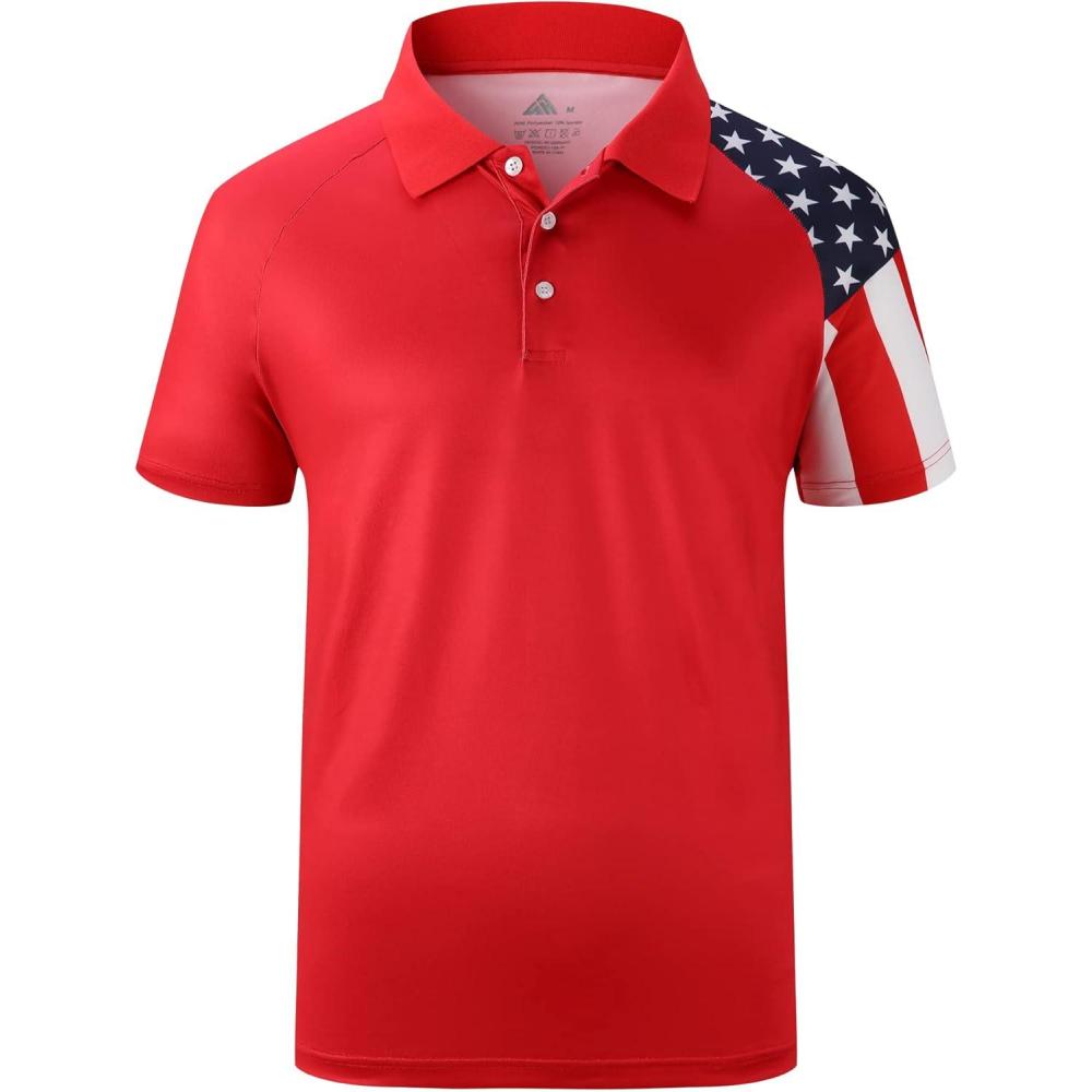 ZITY Men’s Flag Golf Polo Shirts Short Sleeve Tactical Collared Shirt Men Outdoor Moisture Wicking Shirts(Red)