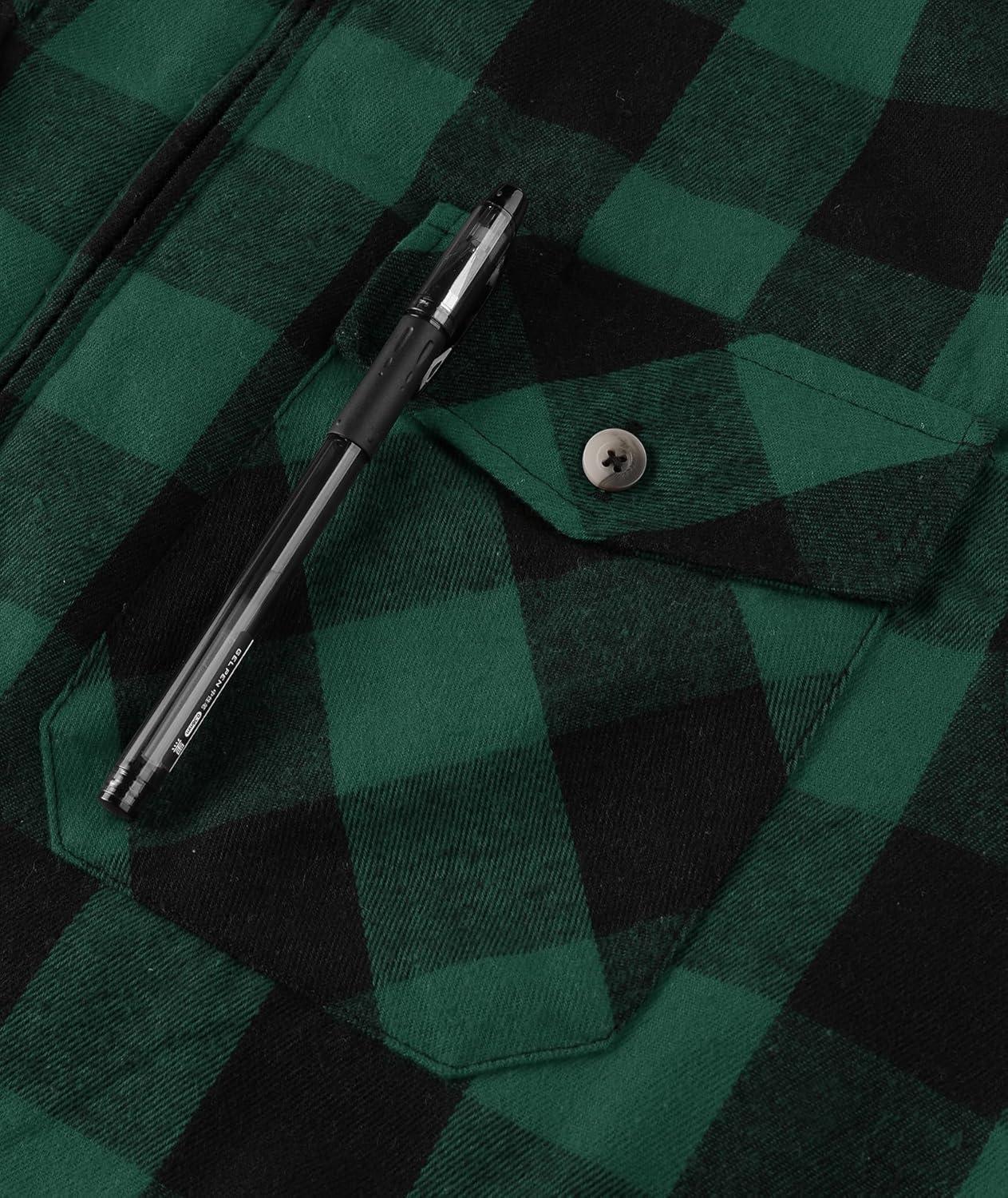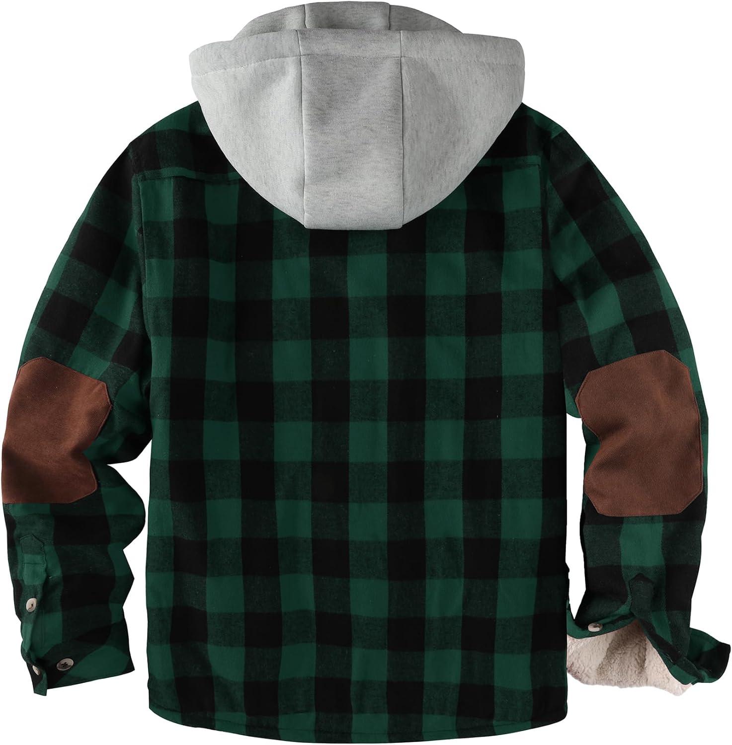 ZITY Men’s Flannel Hooded Jacket Fleece Sherpa Lined Plaid Shirts Jackets Zip Up Sweatshirt Hoodies for Men with 4 Pockets(Gray Green)