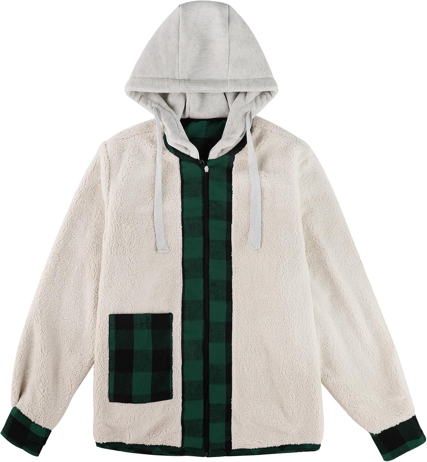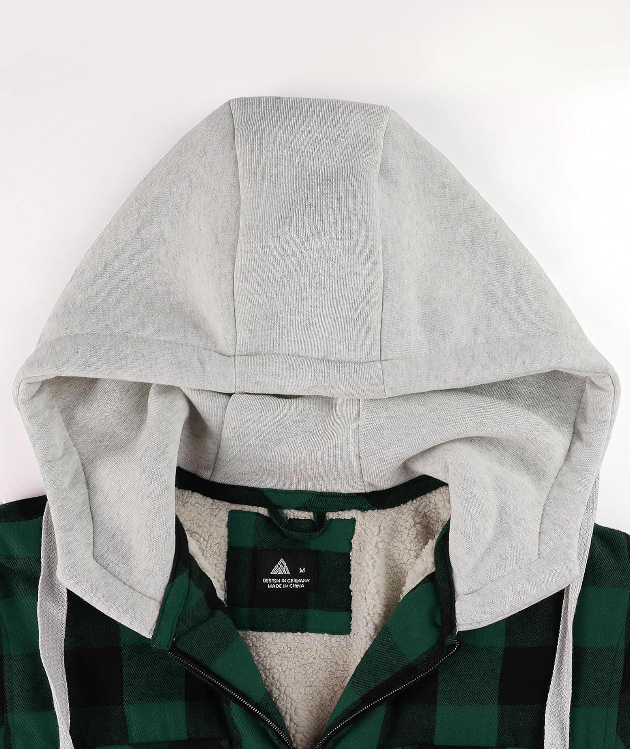 imageZITY Mens Flannel Hooded Jacket Fleece Sherpa Lined Plaid Shirts Jackets Zip Up Sweatshirt Hoodies for Men with 4 PocketsGray Green